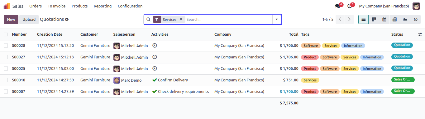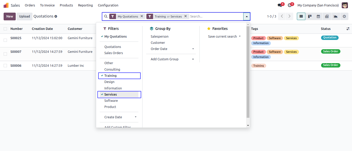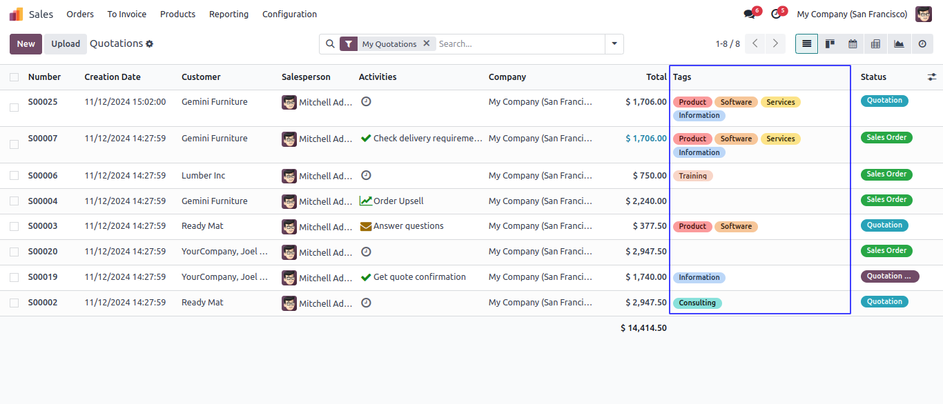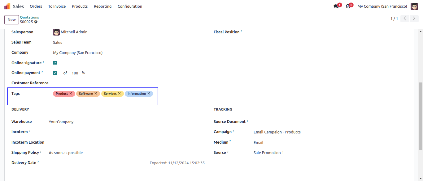 User can easily enable/disable sale order tags field in tree view of sale order/quotation.