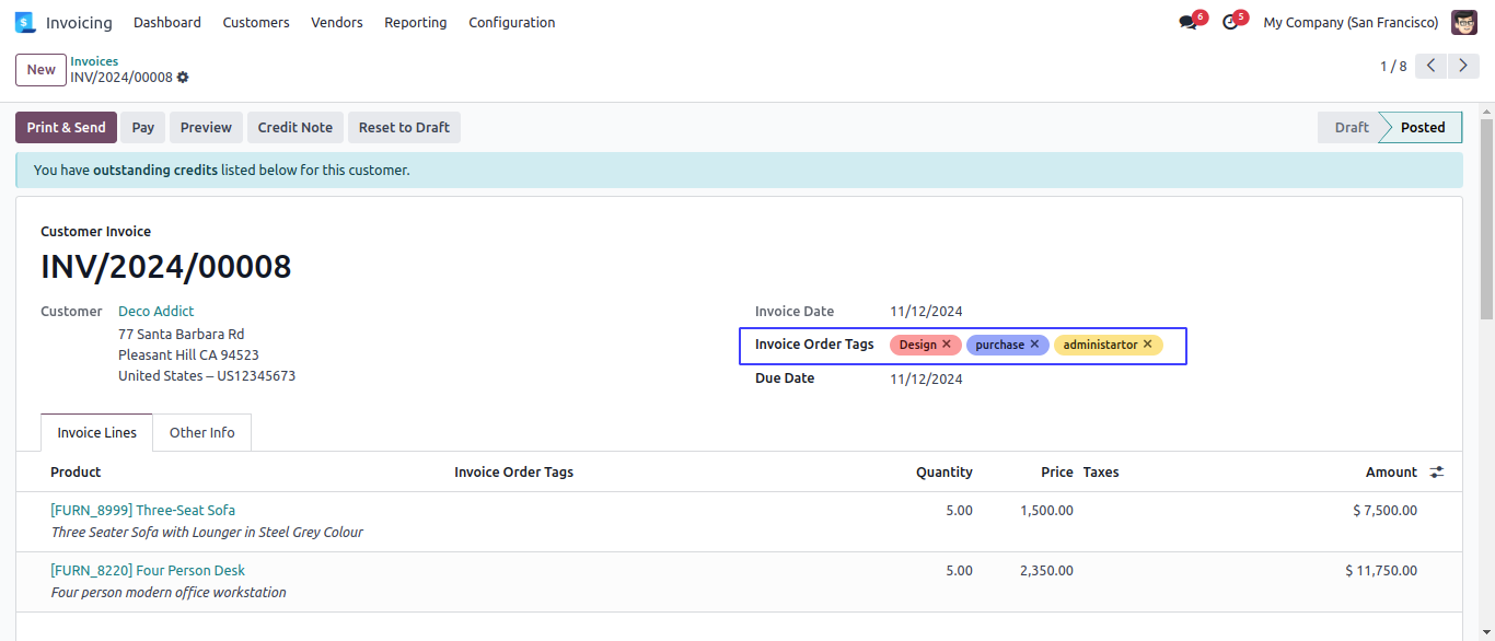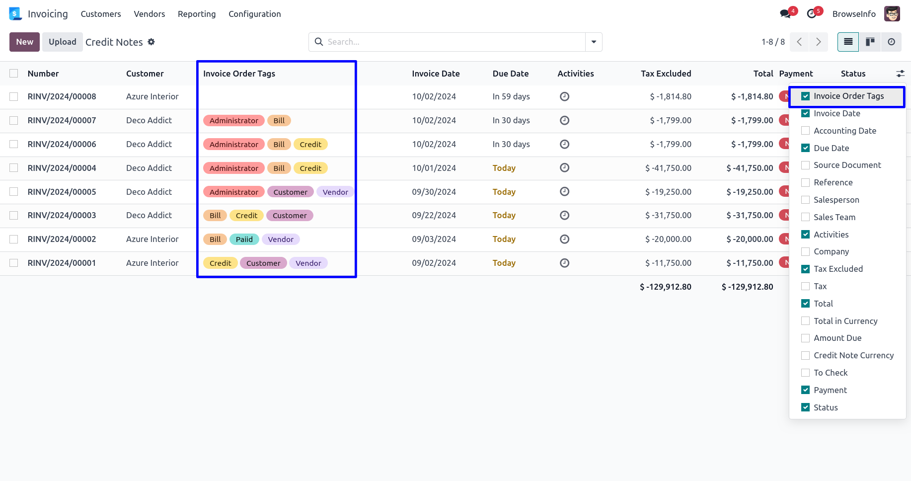 User can easily enable/disable invoice order tags field in tree view of credit notes.