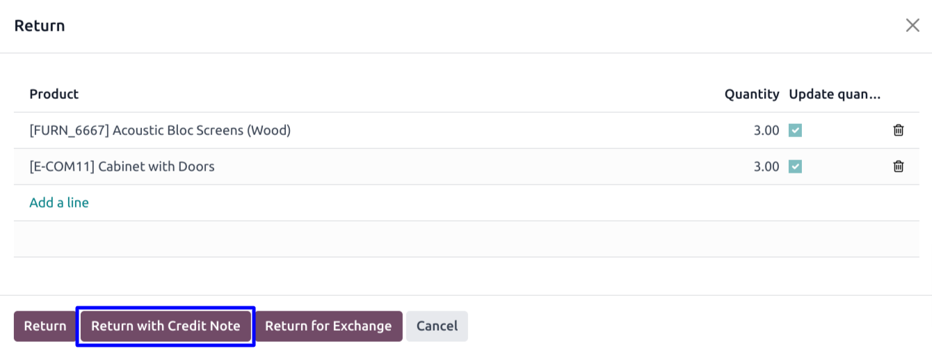 Return with Credit Note