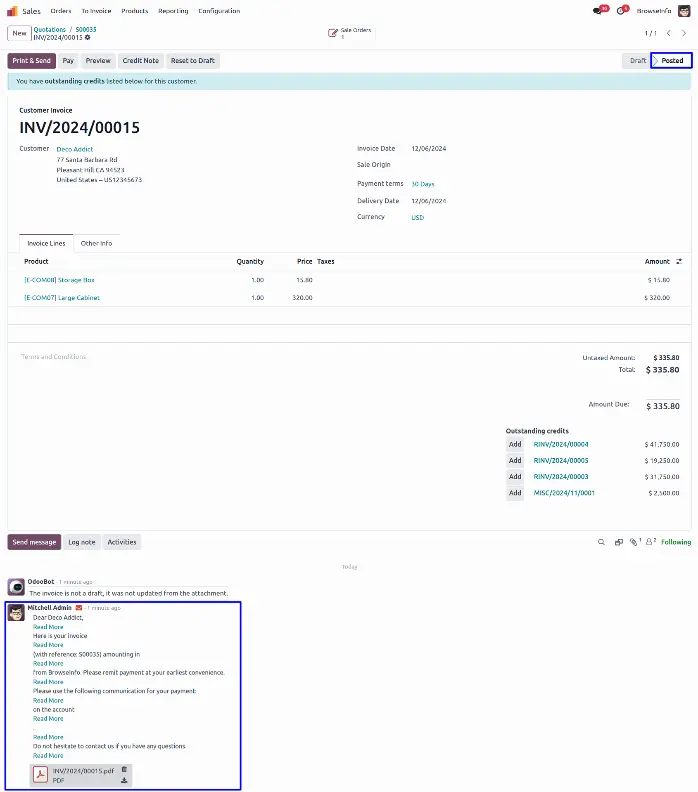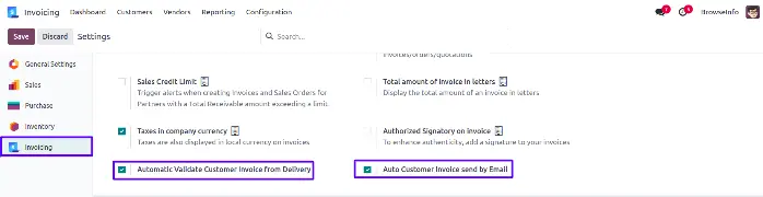 User can see invoice is validated automatically.