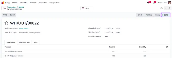 After confirming the sale order delivery order will created.