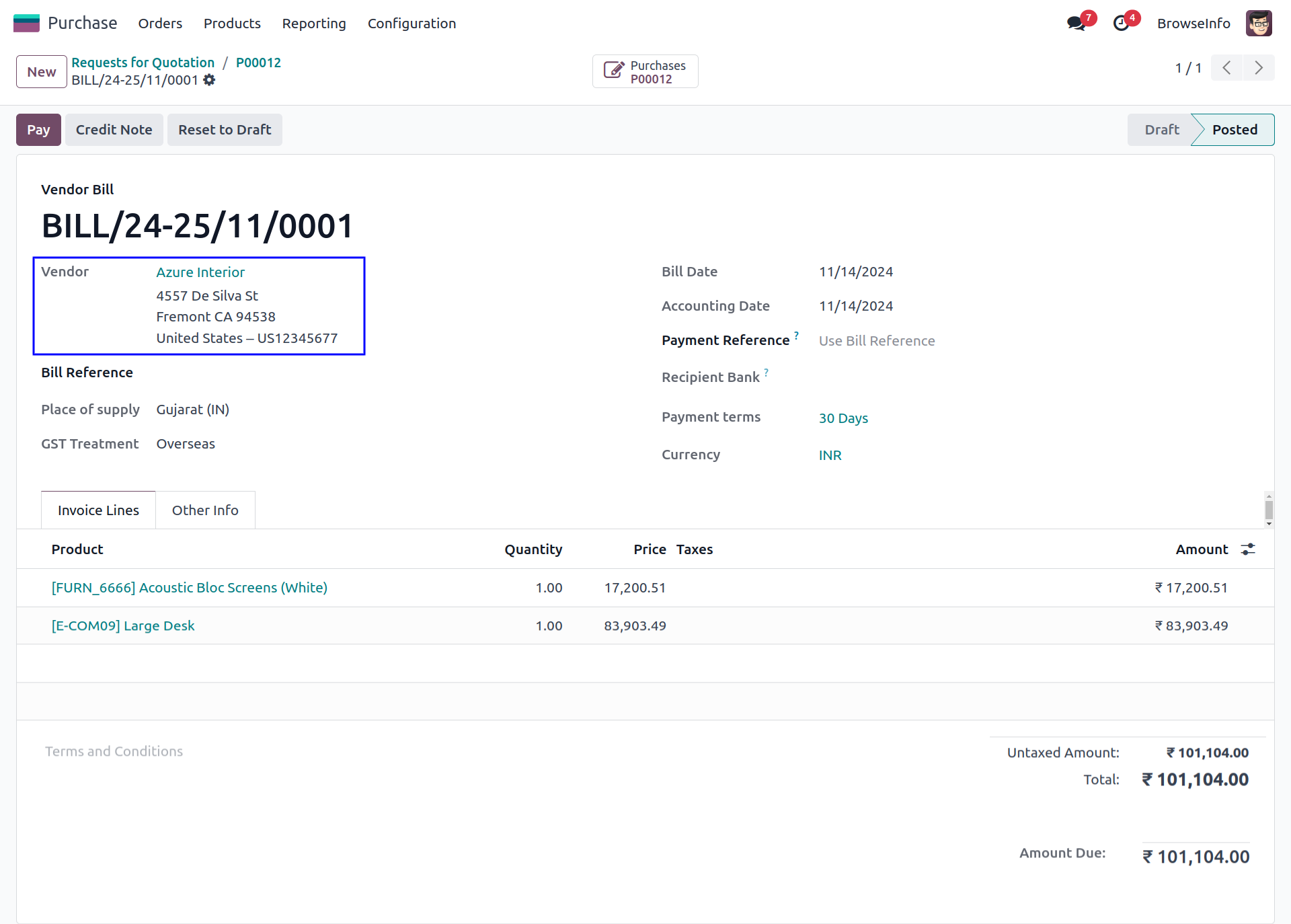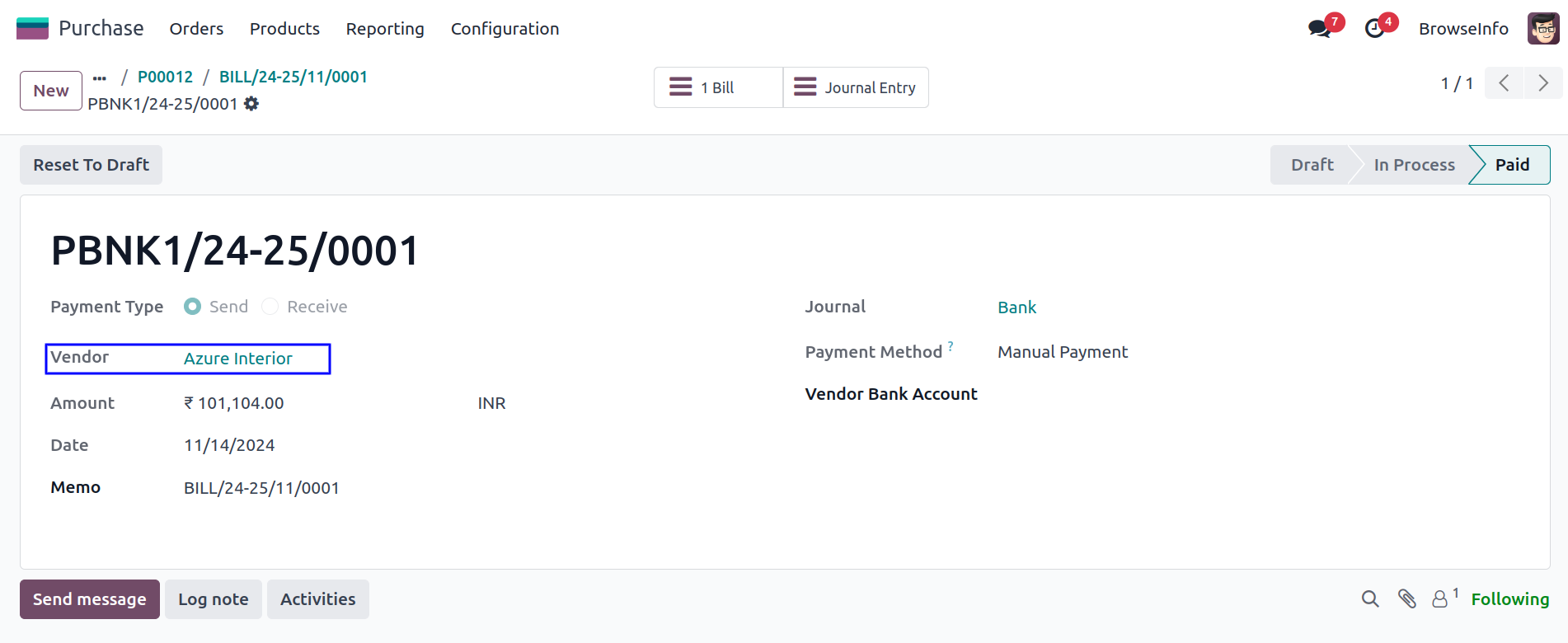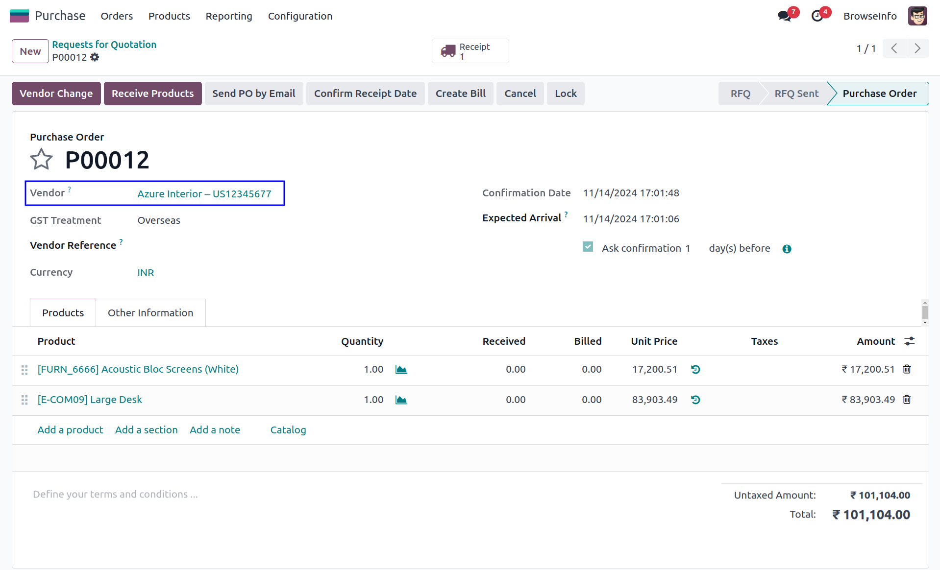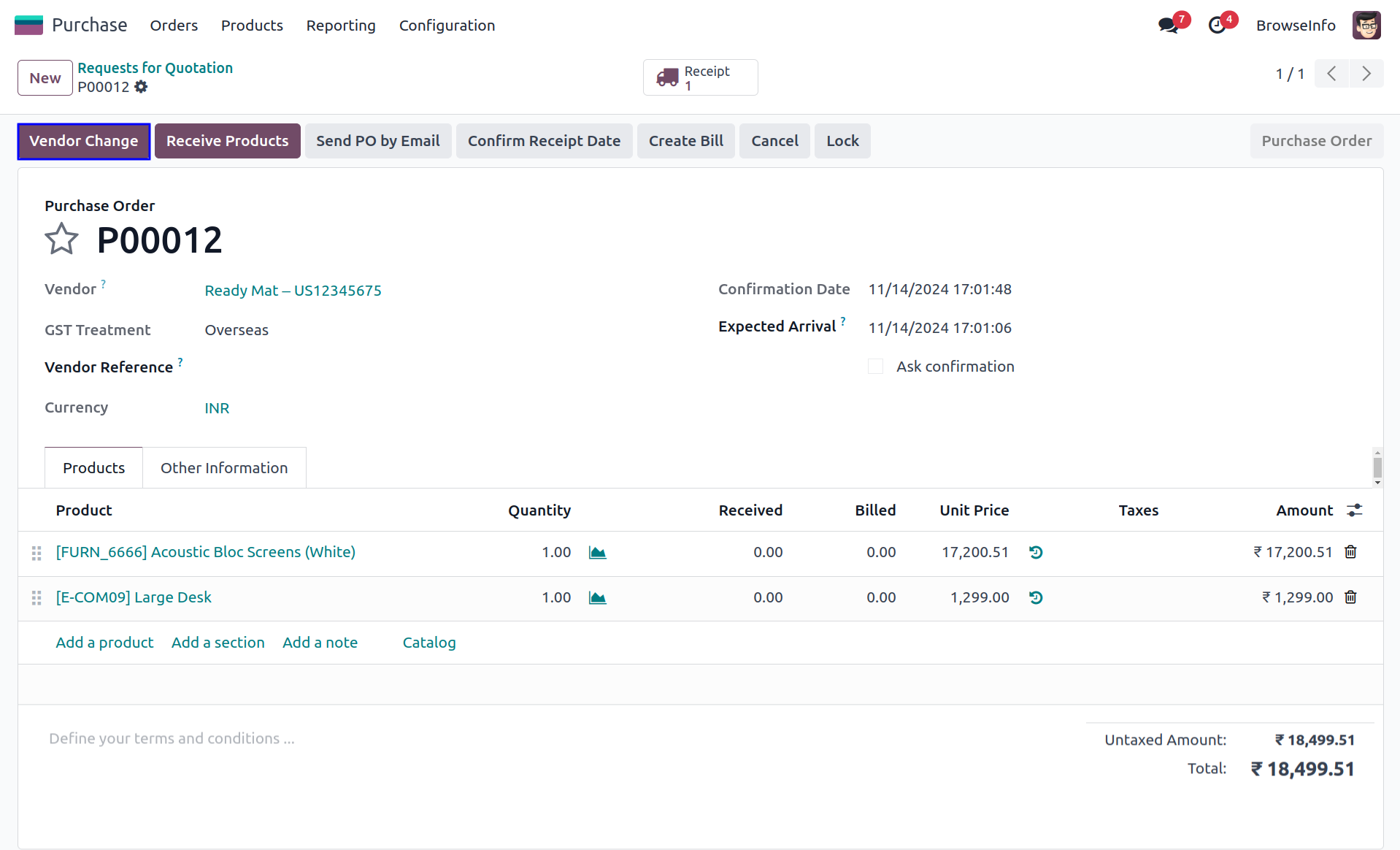Once user can changed vendor in purchase order, It will automatically update in the receipt, bills, journal entry, journal items, payment, and partner ledger.