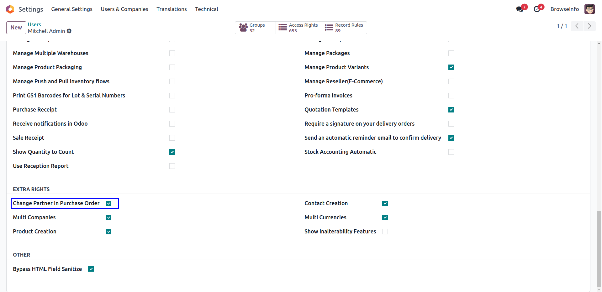 Under user configuration, User have to enable 'Change Partner In Purchase Order' checkbox to change the vendor in validated purchase.