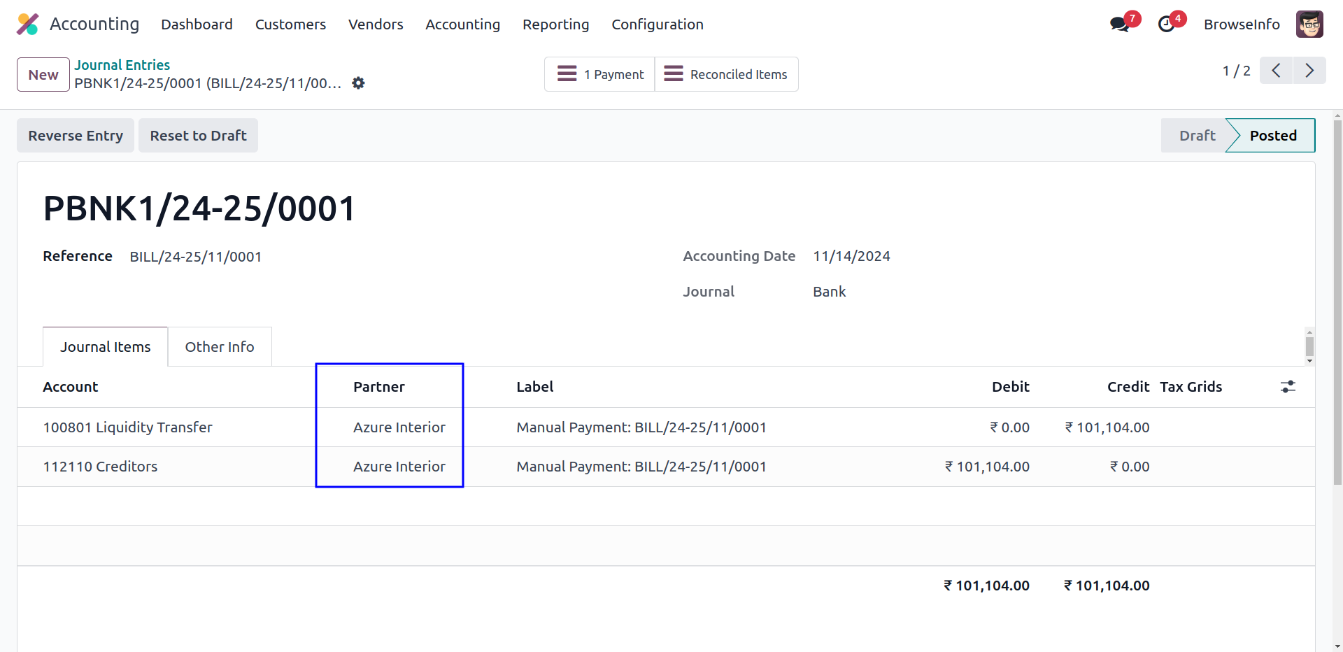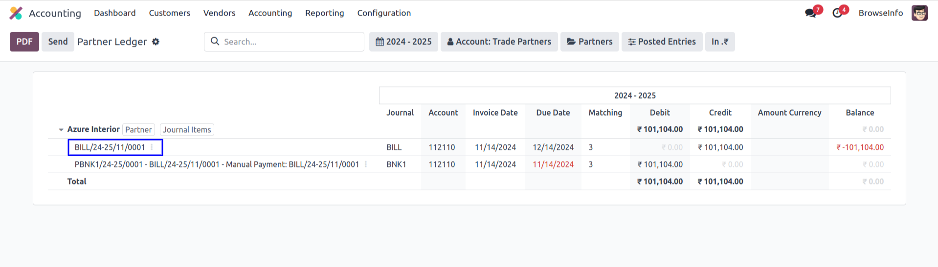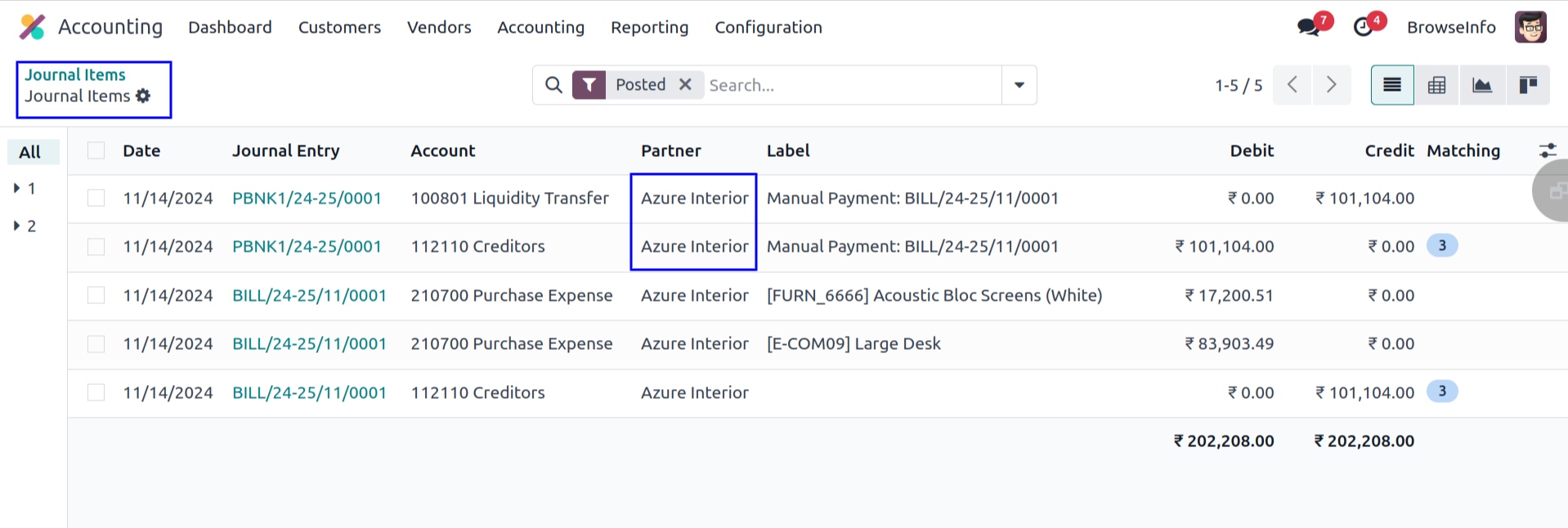 Once change vendor from wizard, Vendor should be updated in the purchase order, receipt, bills, journal entry, journal items, payment, and partner ledger.
