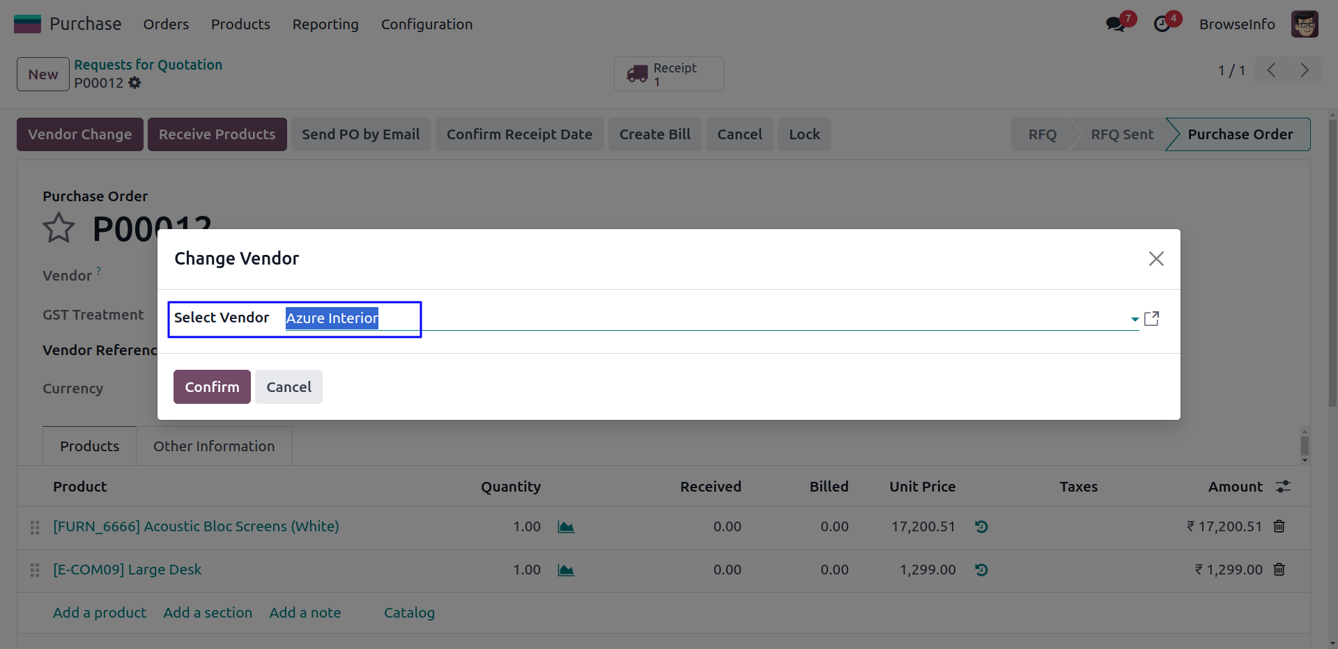 User can select and change the partner from the dropdown of vendor and click on 'CONFIRM' button.