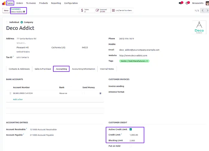 With this Odoo apps, you can set customer credit limit and blocking limit when it exceeded. You need to set a credit limit and blocking limit for any particular customer. So if any user crosses its credit limit, an auto-generated email will be sent to administrator along with that sale order reference. Another useful feature is, Customer can be put on hold. This odoo module feature is useful when customer crosses its credit limit with a lot margin. Once Customer is put on hold, customer will be unable to place any sale order.