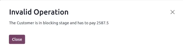 Customer blocking limit is crossed then it will be show the warning about crossed customer blocking limit.