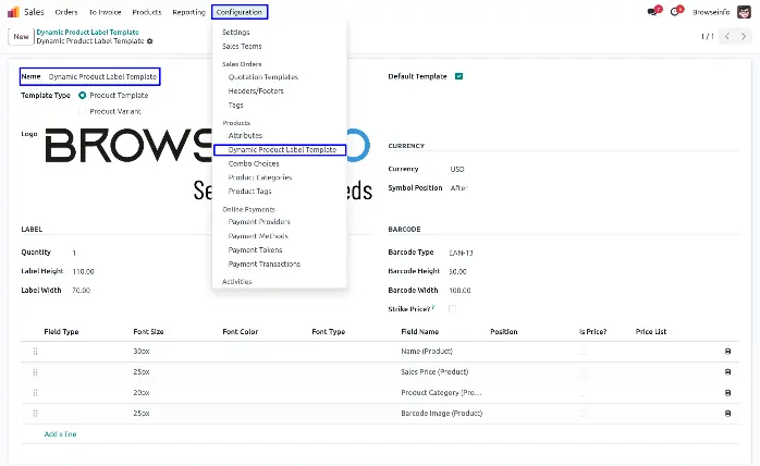 Dynamic Product Label Print Odoo apps provide features which will make barcode and label printing easier. With this odoo module you can Print product barcode with different size(In px) along with logo and currency. Barcode and label printing for product item can very useful and effecitve with this app Dynamic Product Label Print module also used to generate dynamic product label for different product template and product variants in Odoo.