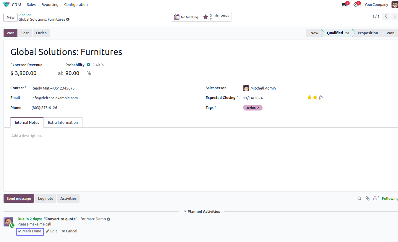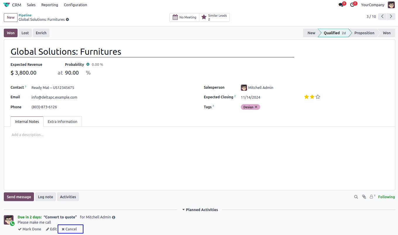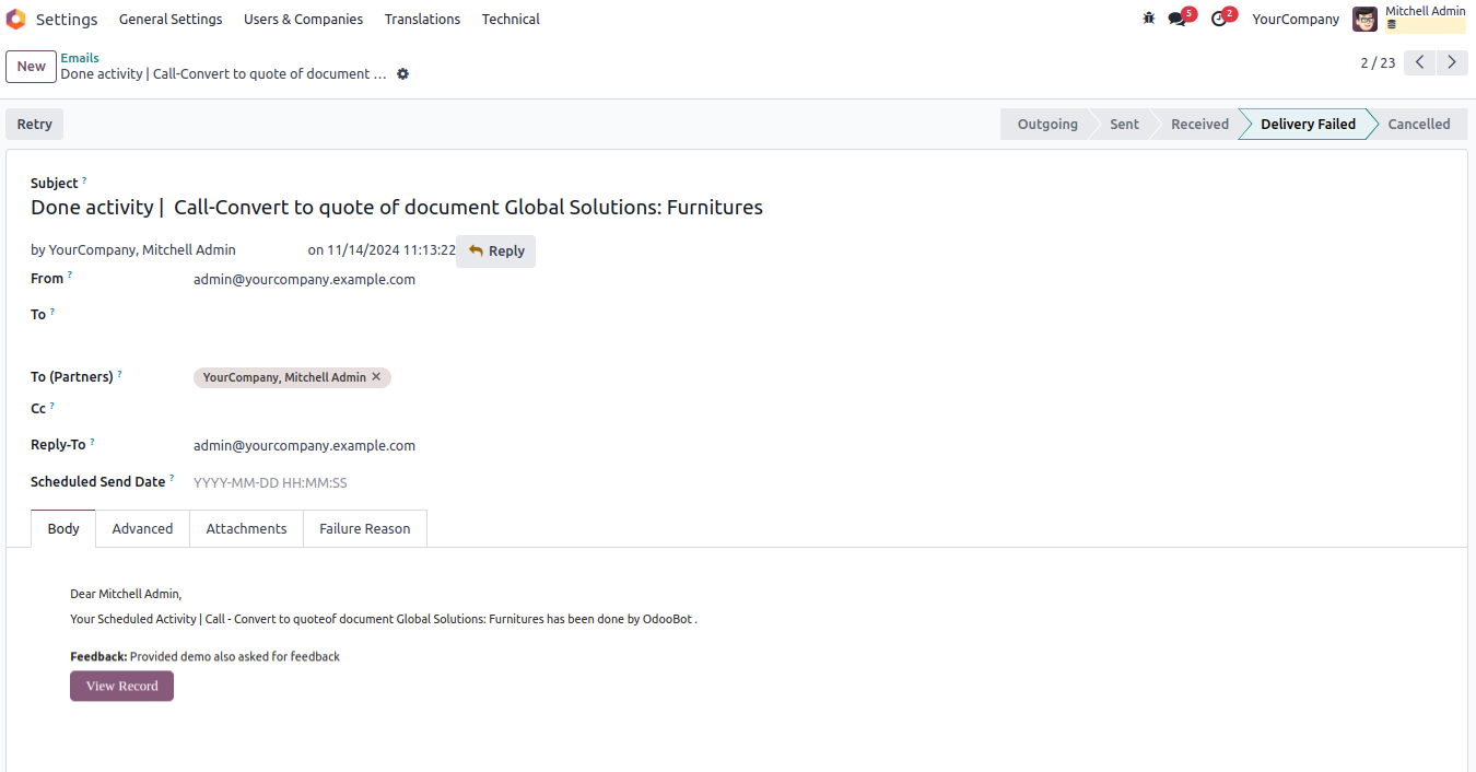 Email Notification for Activity odoo app helps user to send email notification for scheduled activity. Email notification send based on edit, done or cancel scheduled activity both create user and assigned users and according to the configurations users will get email notification. All these notification is configurable you can configure notification according to actions of activity such as edit activities , cancel activities and done activities.