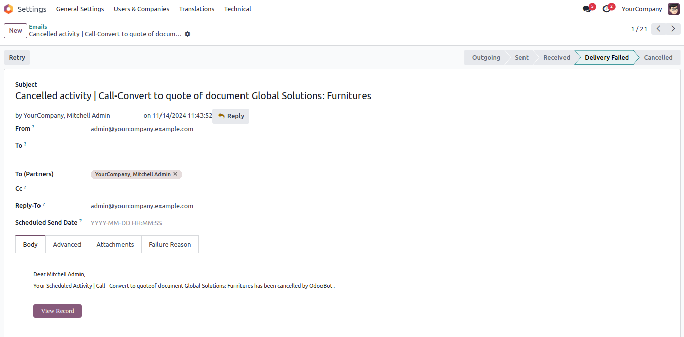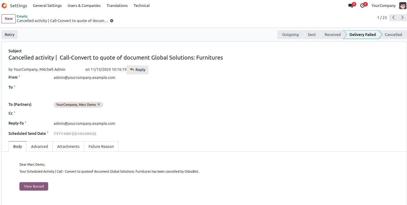 User can see create user and assigned user will get email notification as shown bellow images after cancel scheduled activity.