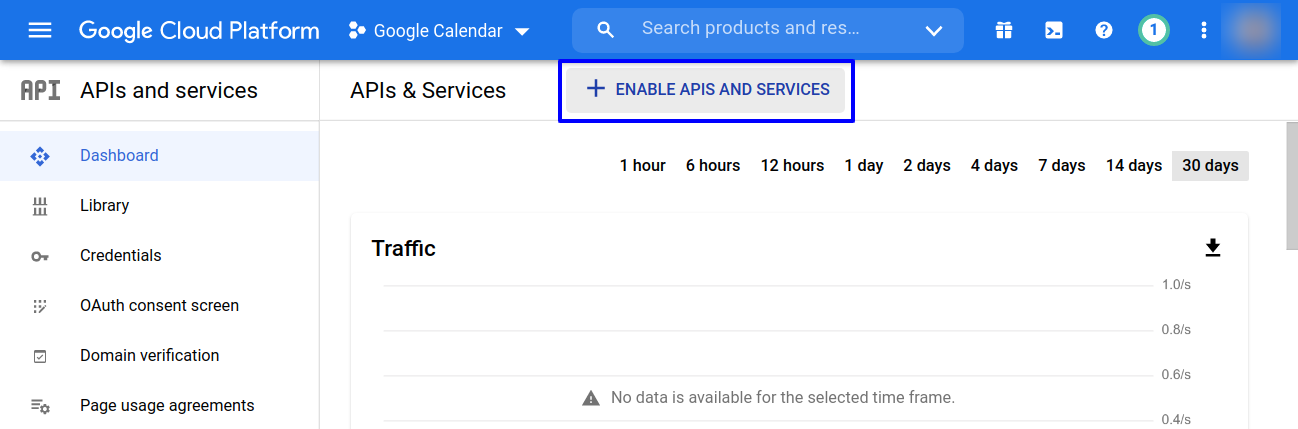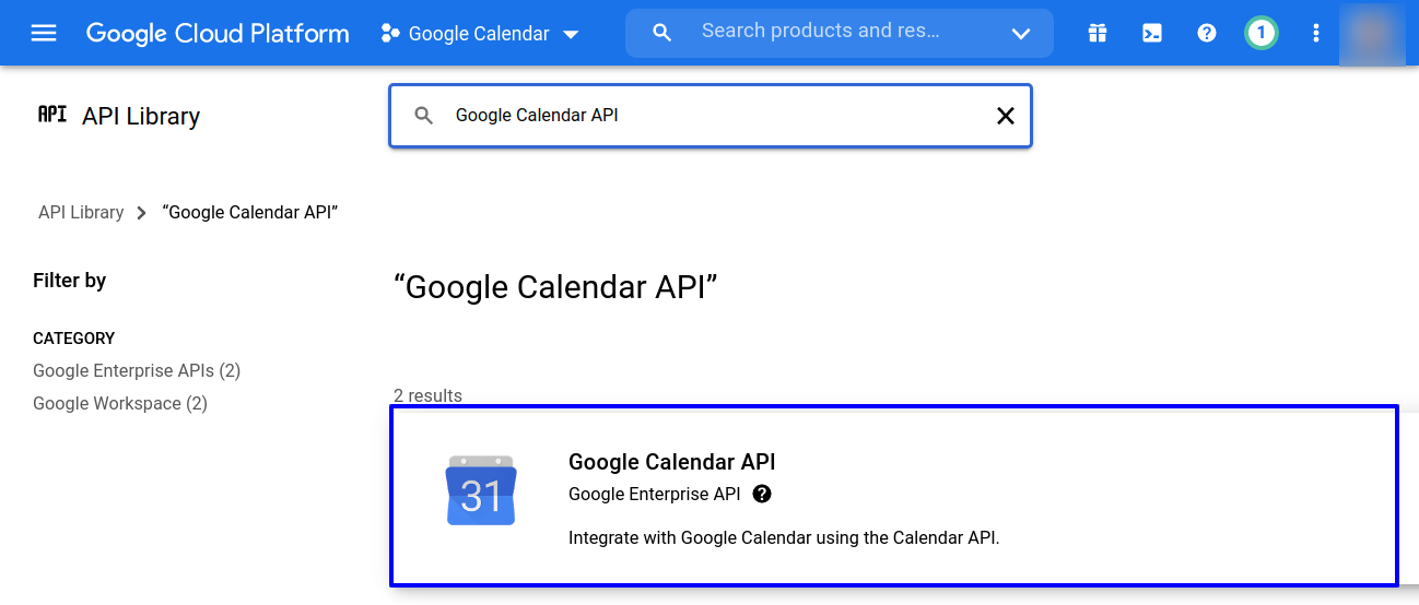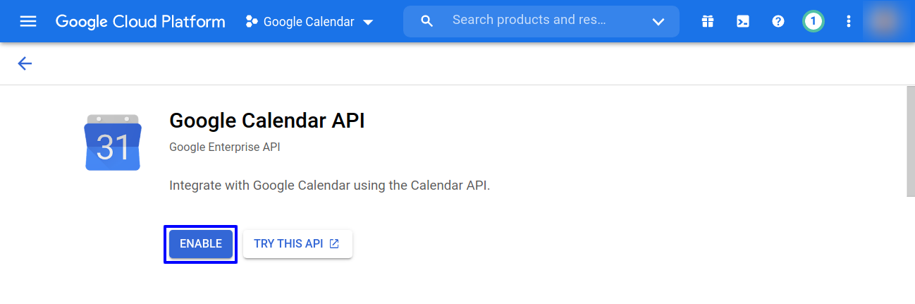 Search for "Google Calendar API", Open and click "Enable" to use.