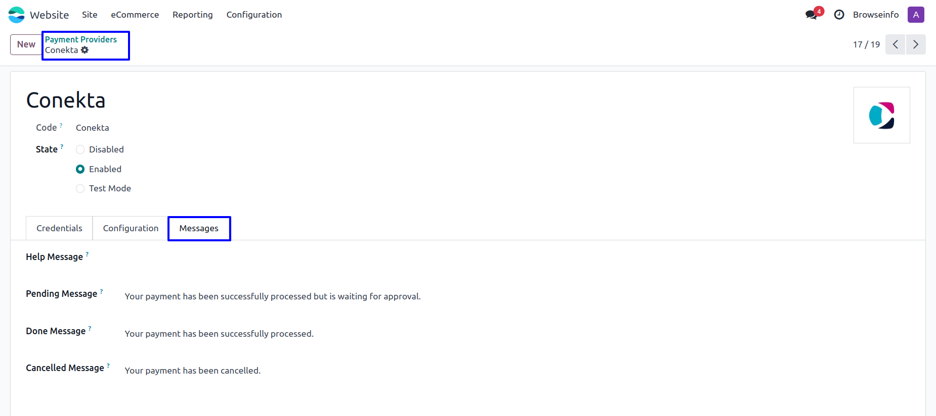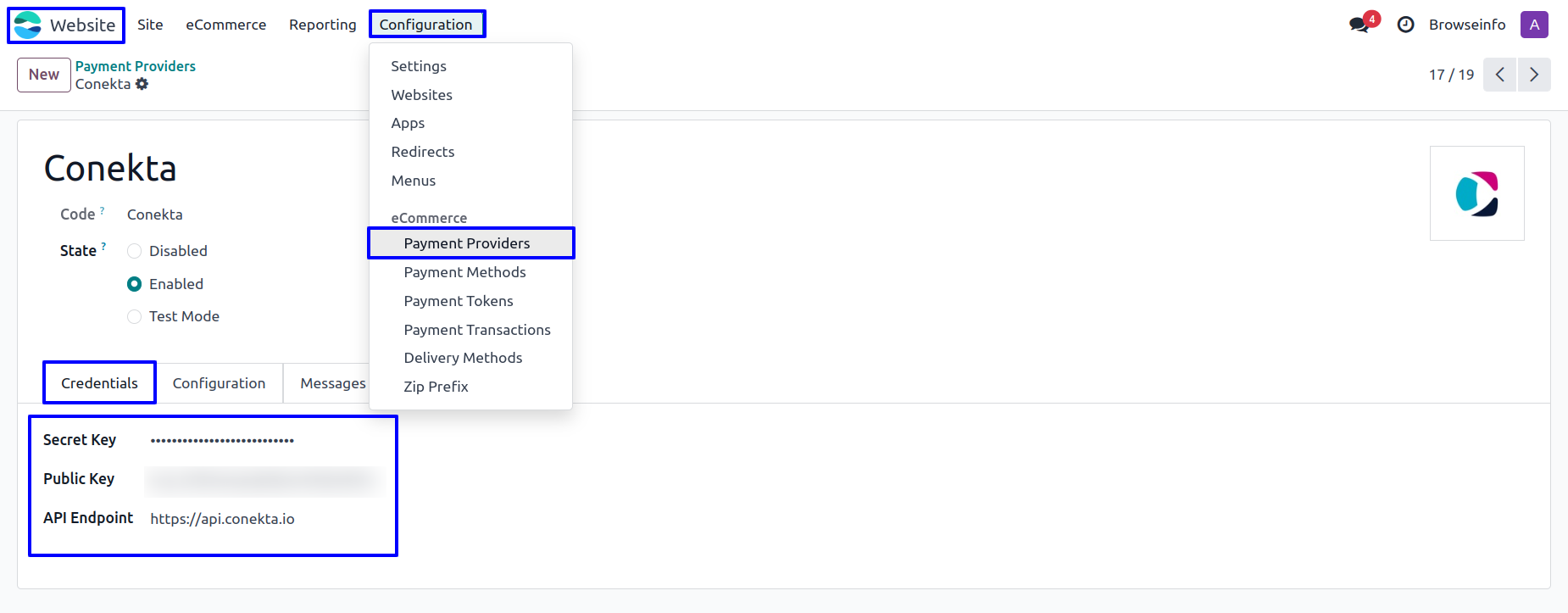 Conekta Payment Provider Configuration
