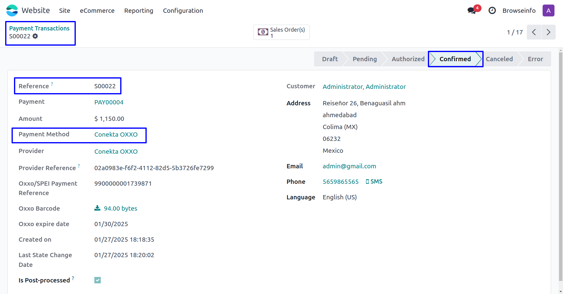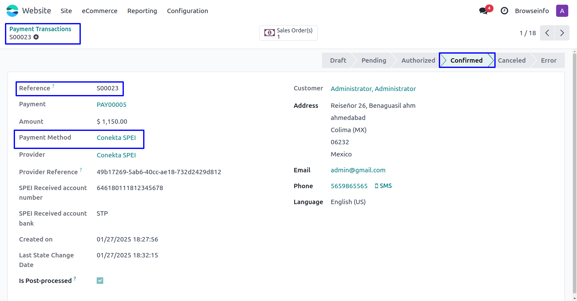 User can see Conekta SPEI payment has been successfully confirmed and payment transactions done.