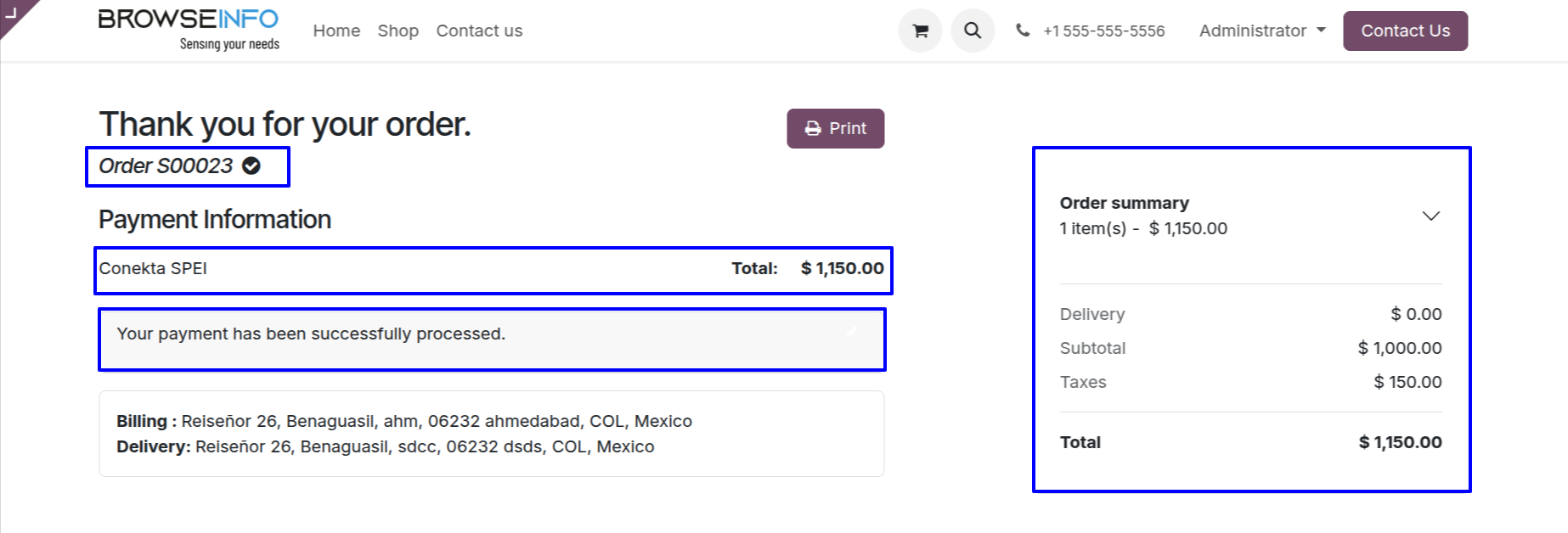 User can see Conekta payment has been successfully processed and payment transactions done.