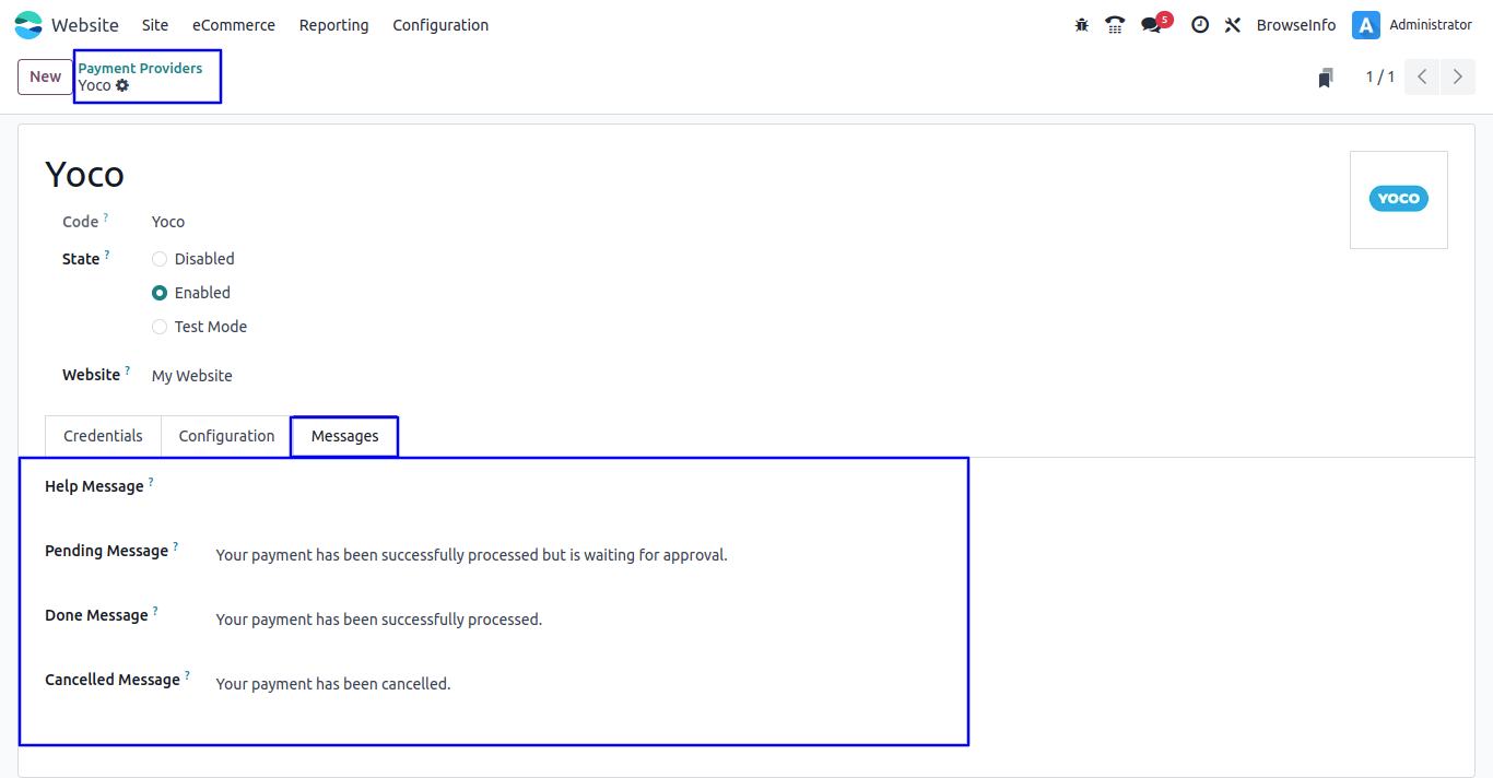 User need to enter YOCO Secret Key and Webhook Signing Secret in YOCO payment provider in Odoo.