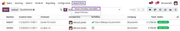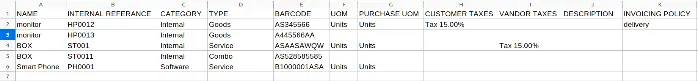 Menu for importing data of product template.