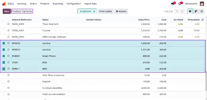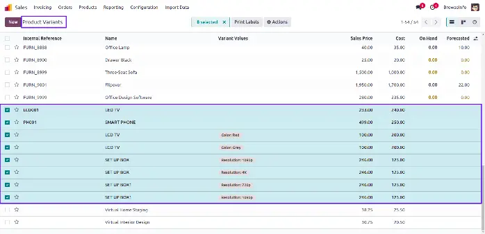 Figure shows the products variant created from given data file.