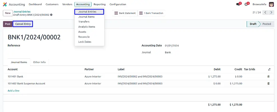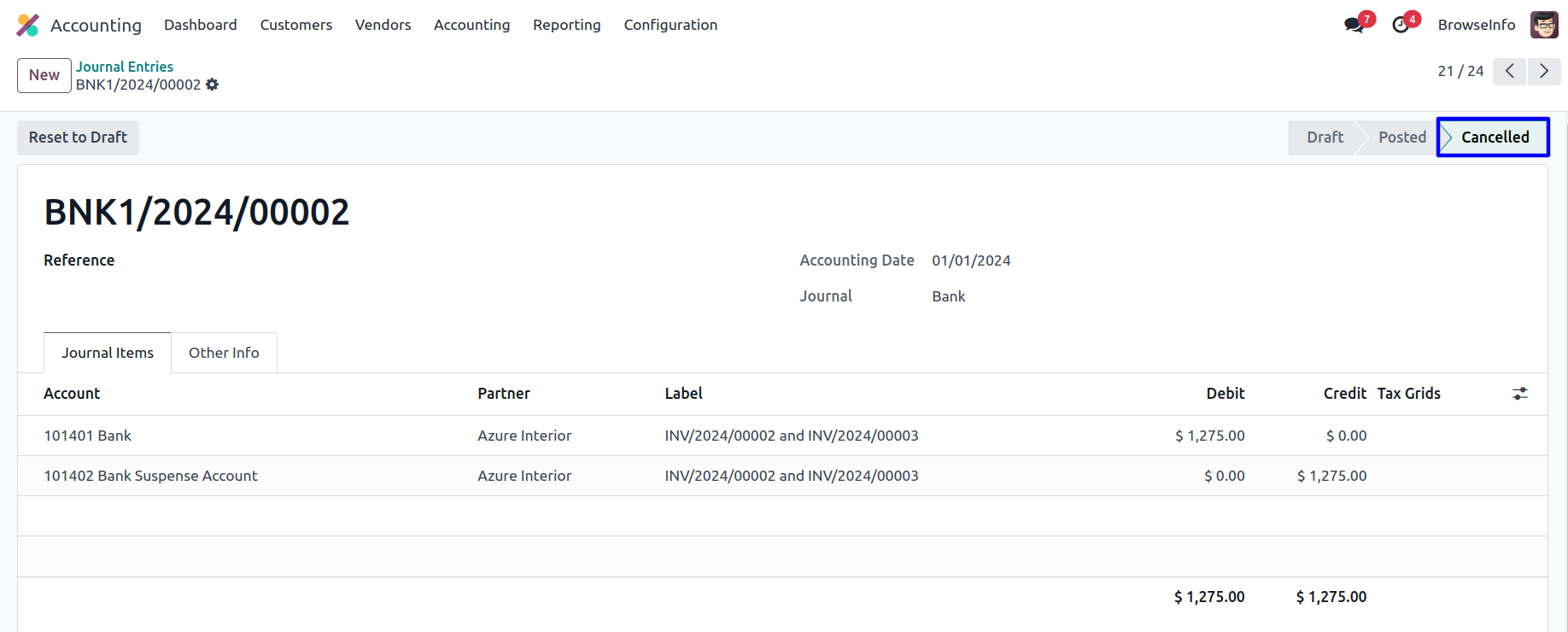 Under configuration user can tick on 'Access to Cancel Invoice' field for cancel customer invoice, vendor bill and journal entry.
