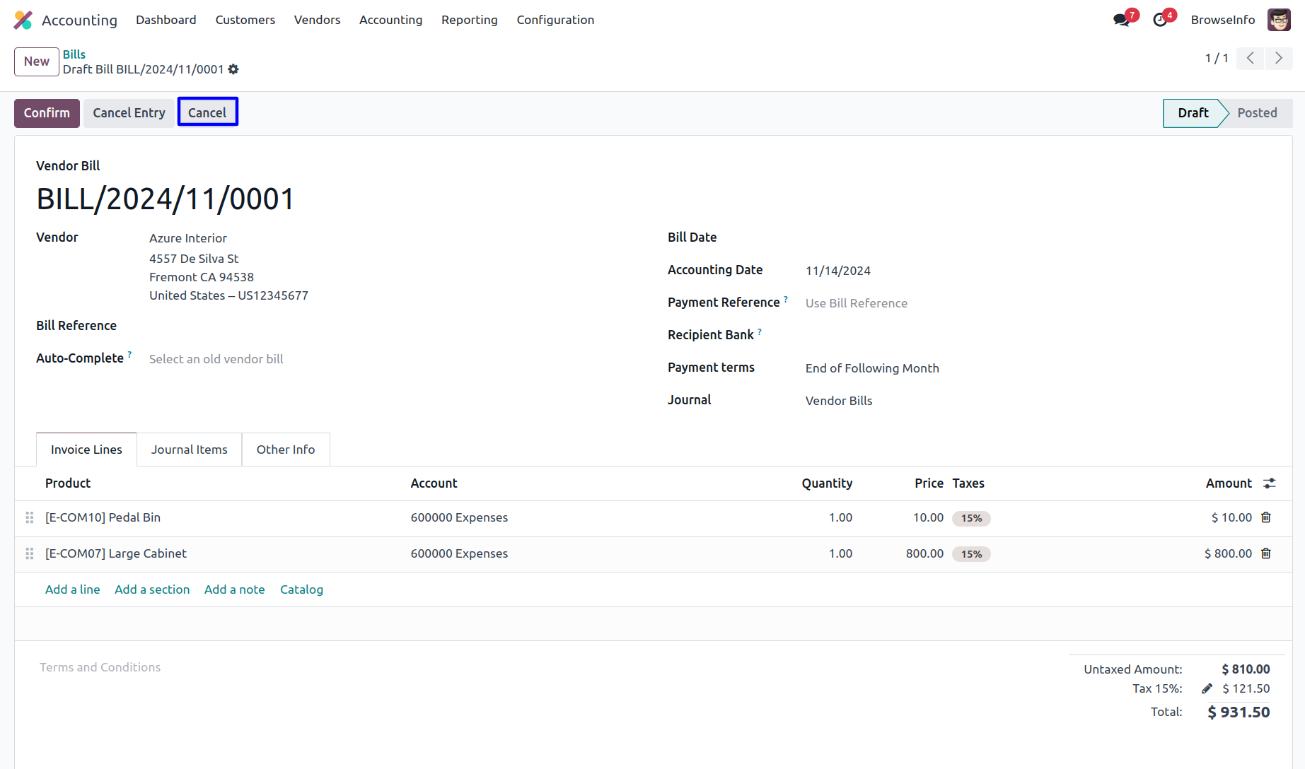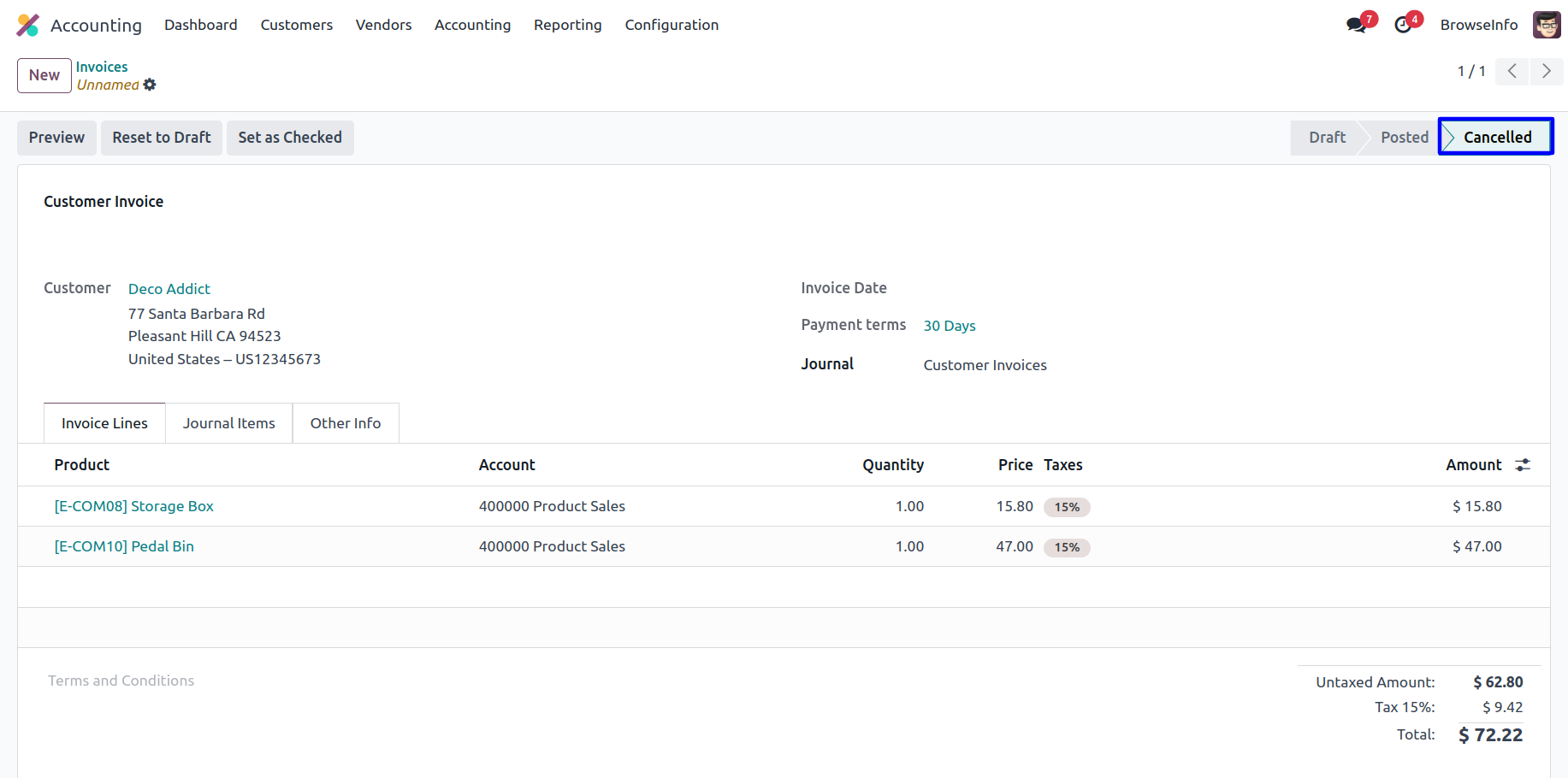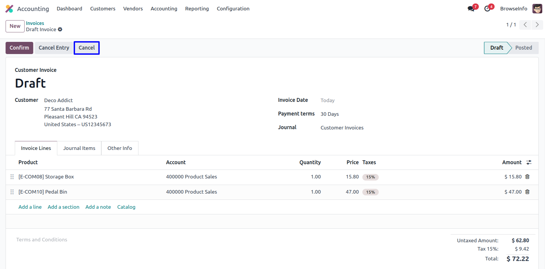 Accounting Cancel Access Controls Odoo App helps users to manage access for the "Cancel Invoice" button for cancelling customer invoices, vendor bills, and journal entries. Using this app you can manage which users are able to cancel invoices, bills, and journal entries. This app adds an extra access rights group as "Access to Cancel Invoice" , when this group access is granted to users then only that user is able to see the cancel button on invoice, vendor bill and journal entries.