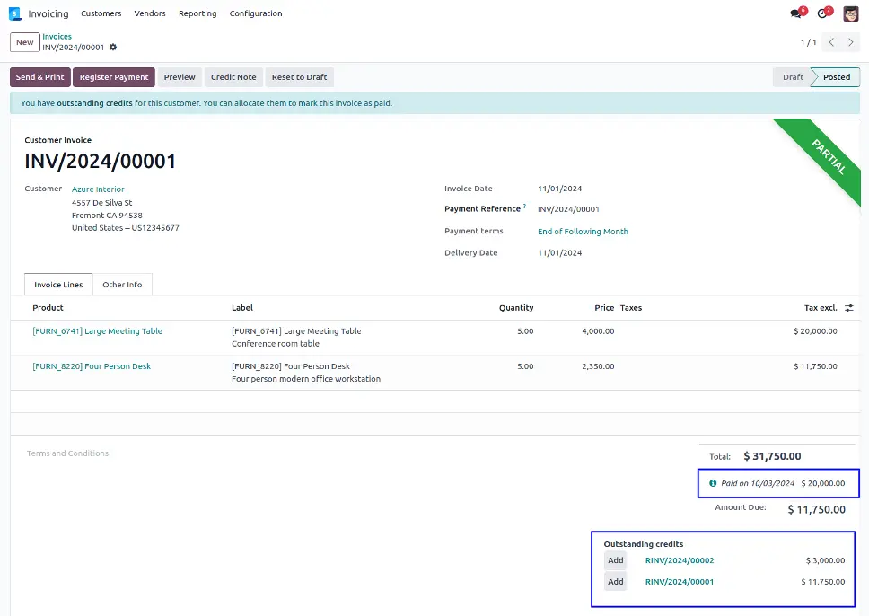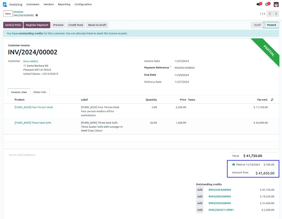 You can see the customer single invoice has been partially paid and also calculate remaining outstanding credit payment for customer.