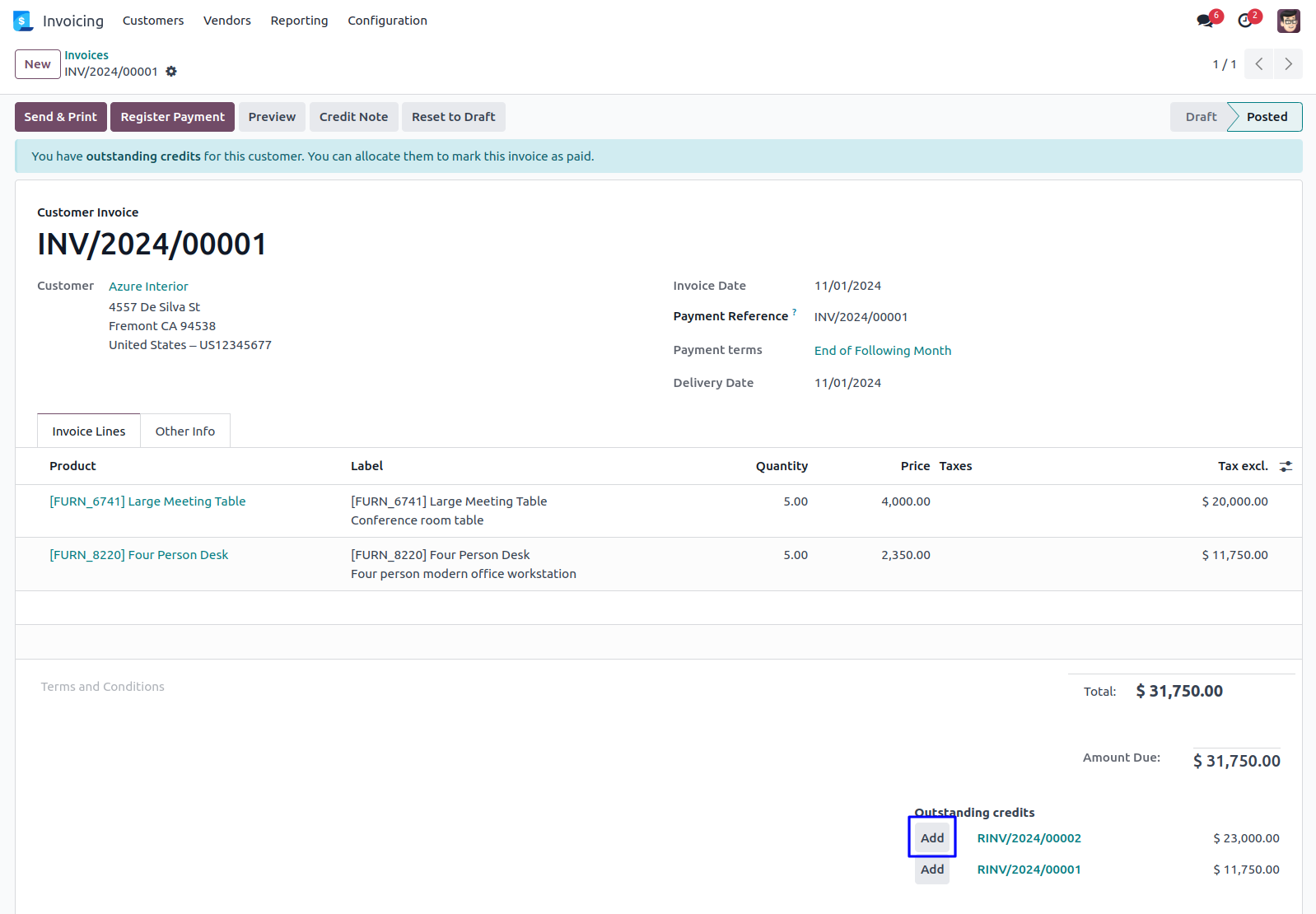 Here you can see outstanding credit payment of the customer, when you click on "Add" button so one payment wizard will be open.