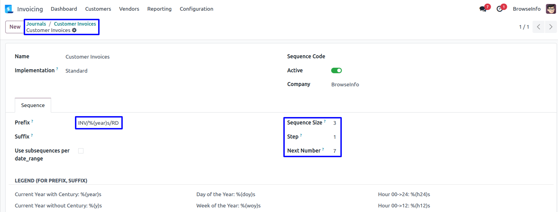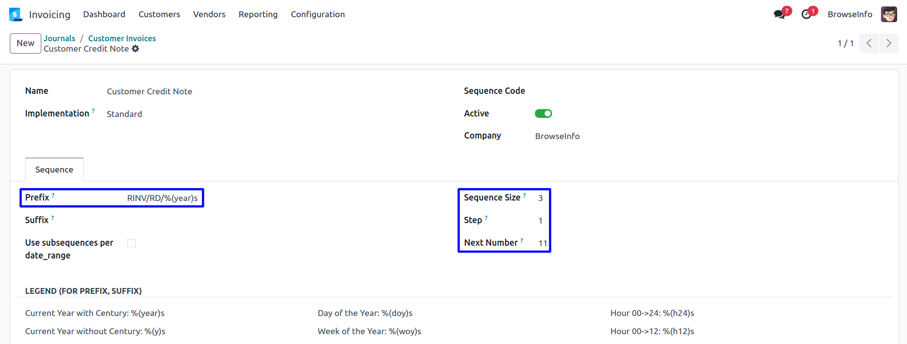User can set "Prefix", "Suffix", "Sequence Size" and all other options and this will applied to journal sequence.