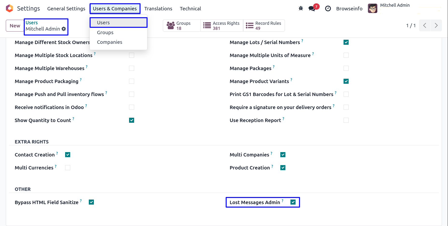When user enable "Lost Messages Admin" then that user will be able to have access to loss message manager.