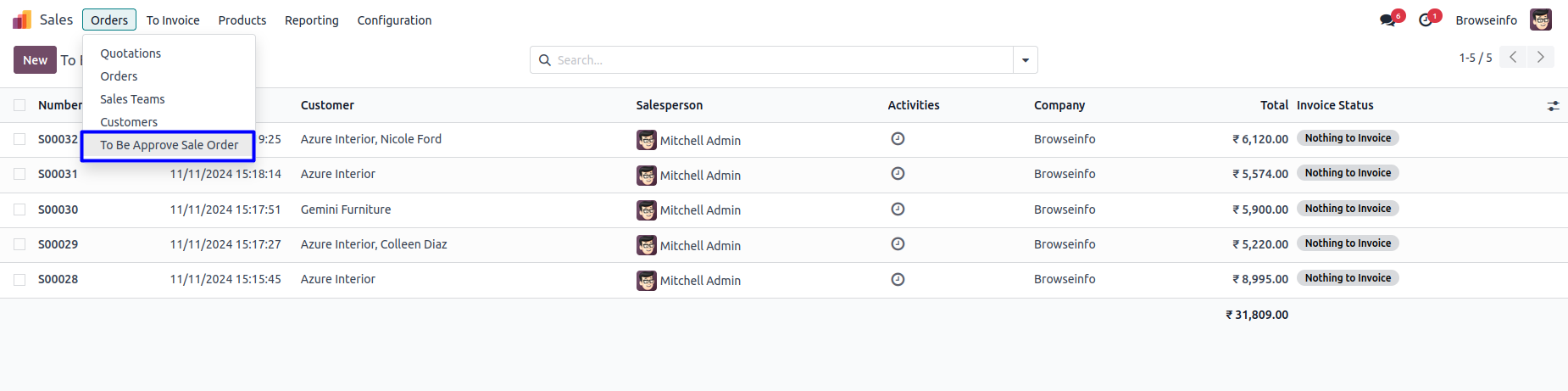 Under Sales > Orders > To Be Approve Sale Order menu user can see sales order to approve.