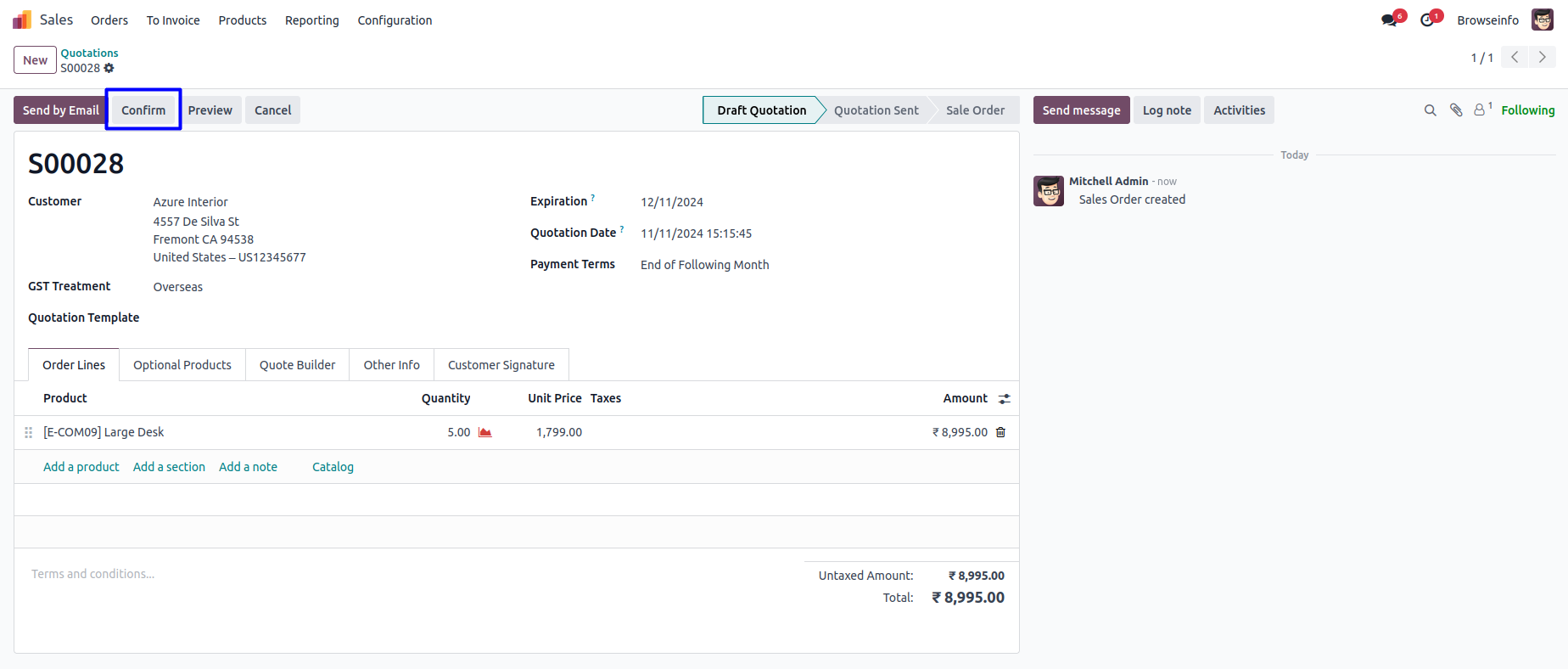 On confirmed sales order user can see sale order on "To Approve" state,