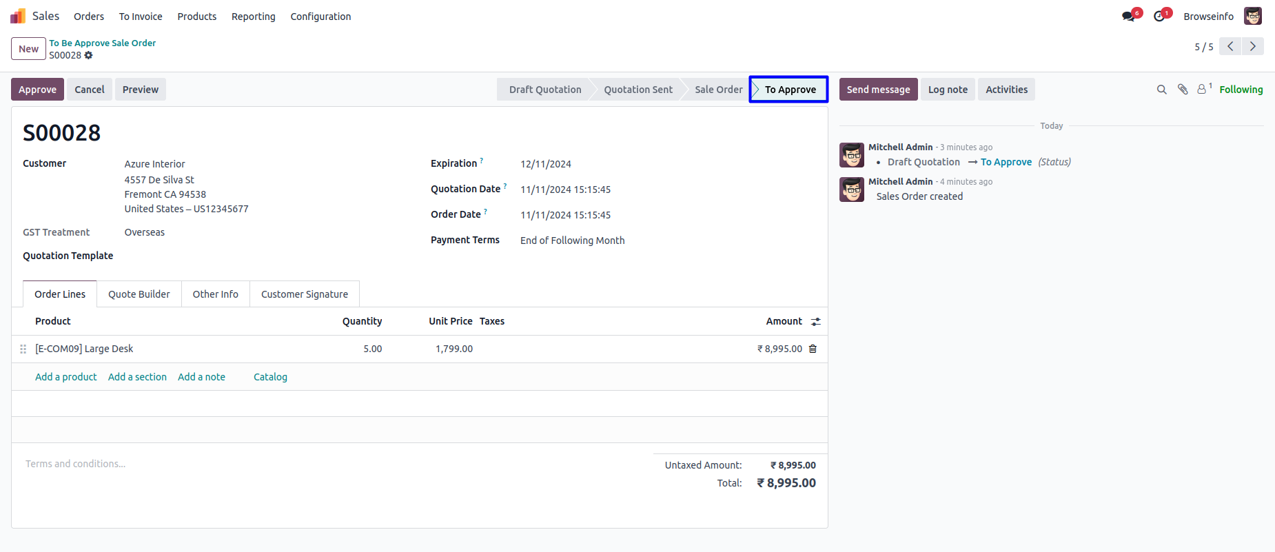 1) Sales Approval in Sale.