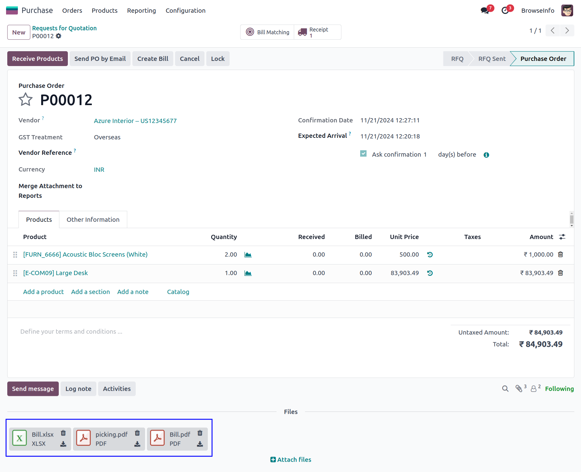 request for quotation/purchase order form view, ensuring a seamless and
