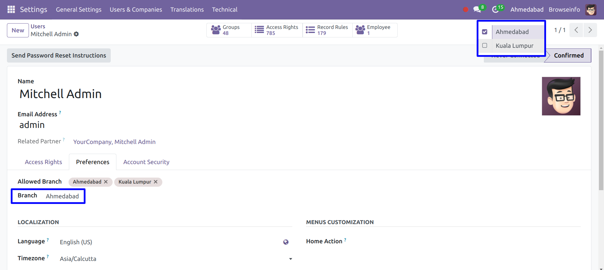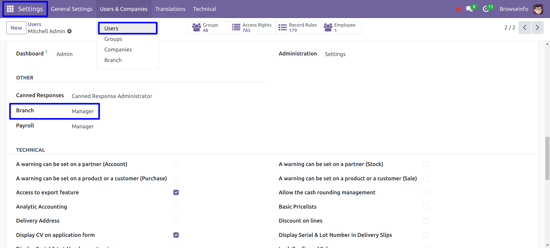 Also Don't worry about the access rights too, We have added branch user/manager roles inside the Odoo module, Branch user can only access records of its specific branch and Branch manager can see records of all Branches.