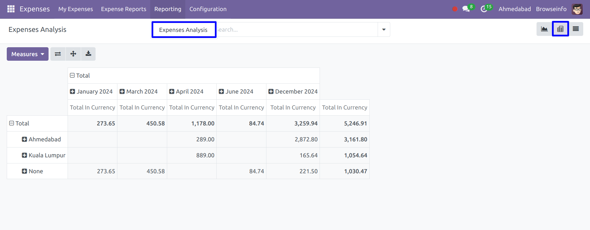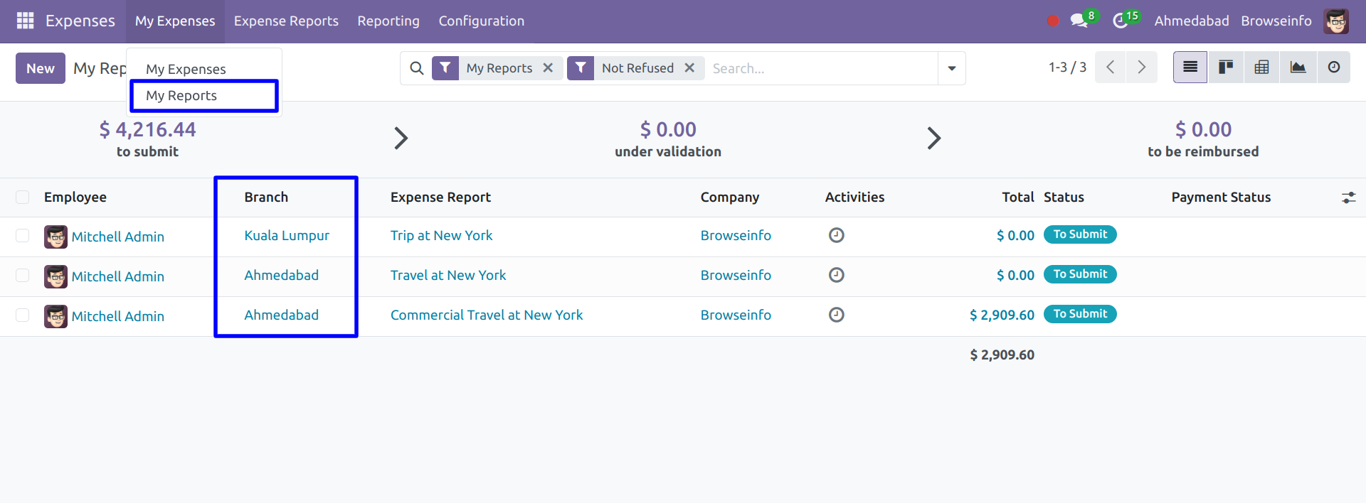 User can set and see branch on expense and expense report and also on expense analysis report.