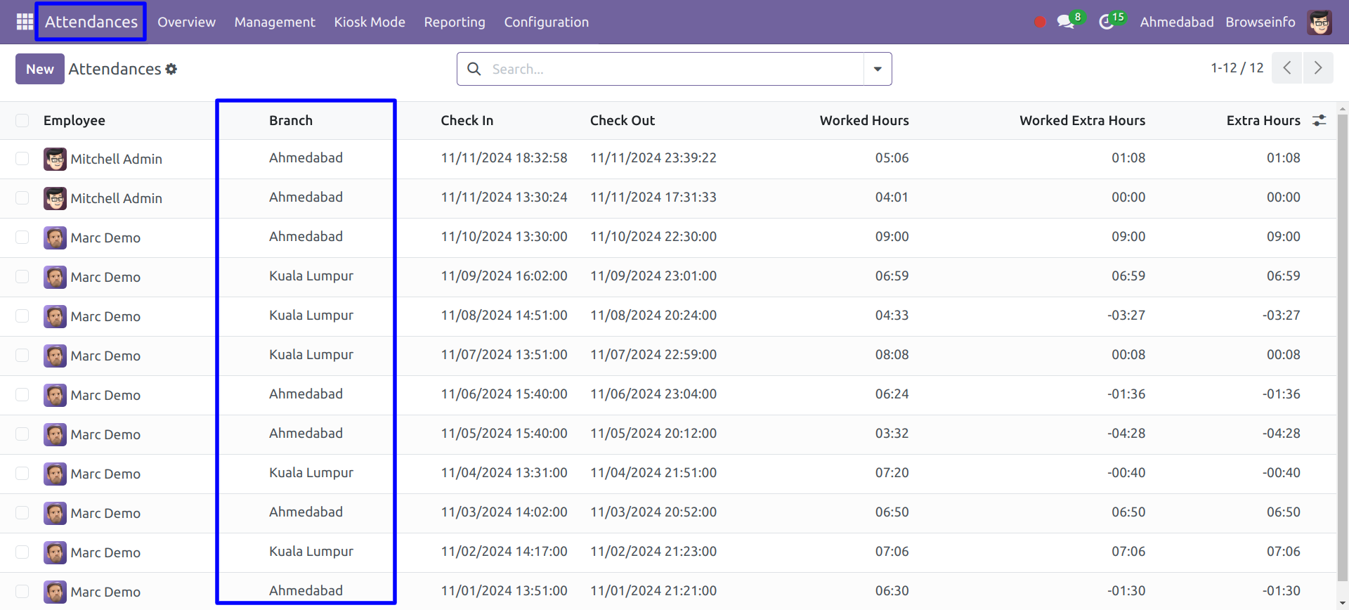 Users with "Multi Branches" access rights can see and change multiple branch from header.