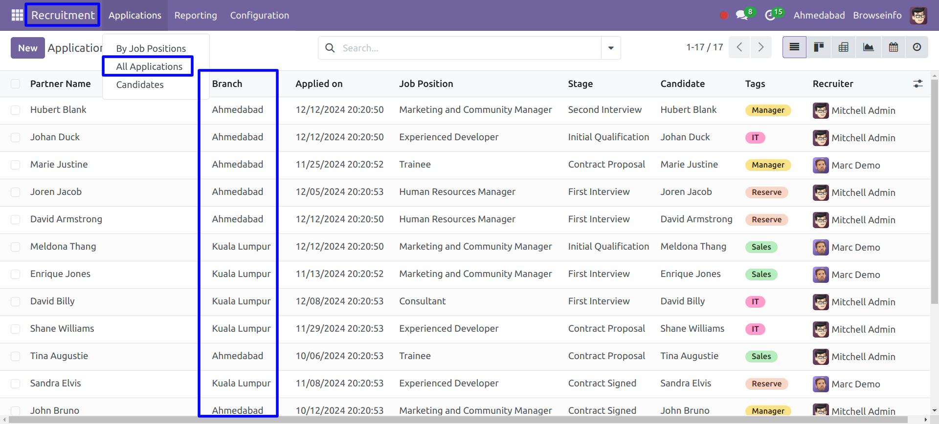 This odoo app helps users to create multiple branches to manage human resources. Users can create multiple branches for a single company set to users and employees. branch will automatically select on records or can select branch manually for job application, employee contract, department, attendance, expenses, expense report. Users can also manage payroll in community edition with multiple branches, create salary rules, salary structure and create payslip for employees and also can print payslip reports.