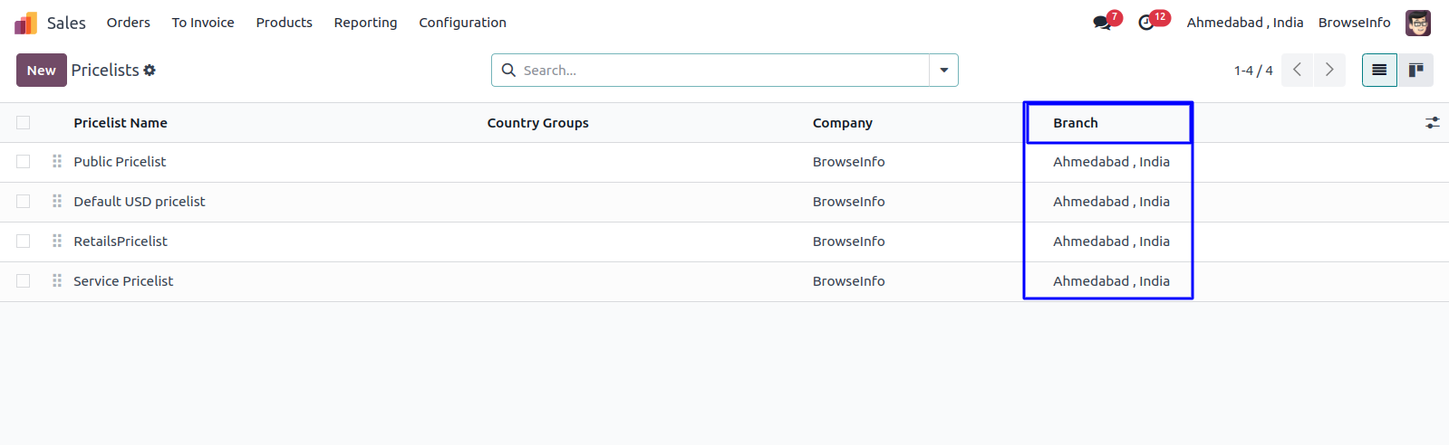 Create pricelist for different branch. Default branch set automatic based on user branch.