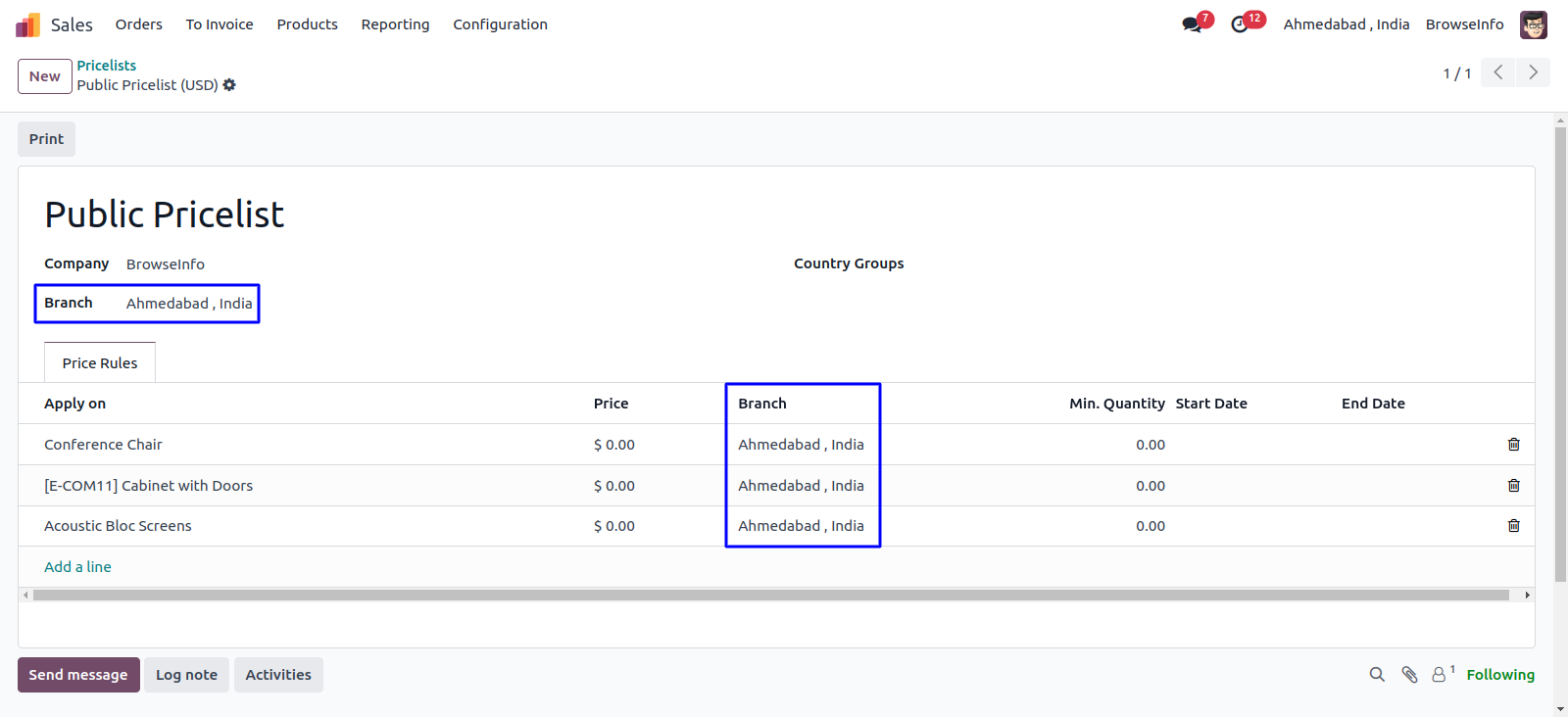 Multi Branch/Unit on Pricelists Odoo App helps users to manage multiple branch units of pricelist. User can create pricelist for different branch. Default branch set automatic based on user branch. User can make different branch for single company and use that branch for pricelist. Do you have multiple unit for single company? Do you want them to works as separate entity inside the company? Here you go, This multiple branch management Odoo apps helps users to make different branches for single company with multi branch concept which works same as multi-company environment.