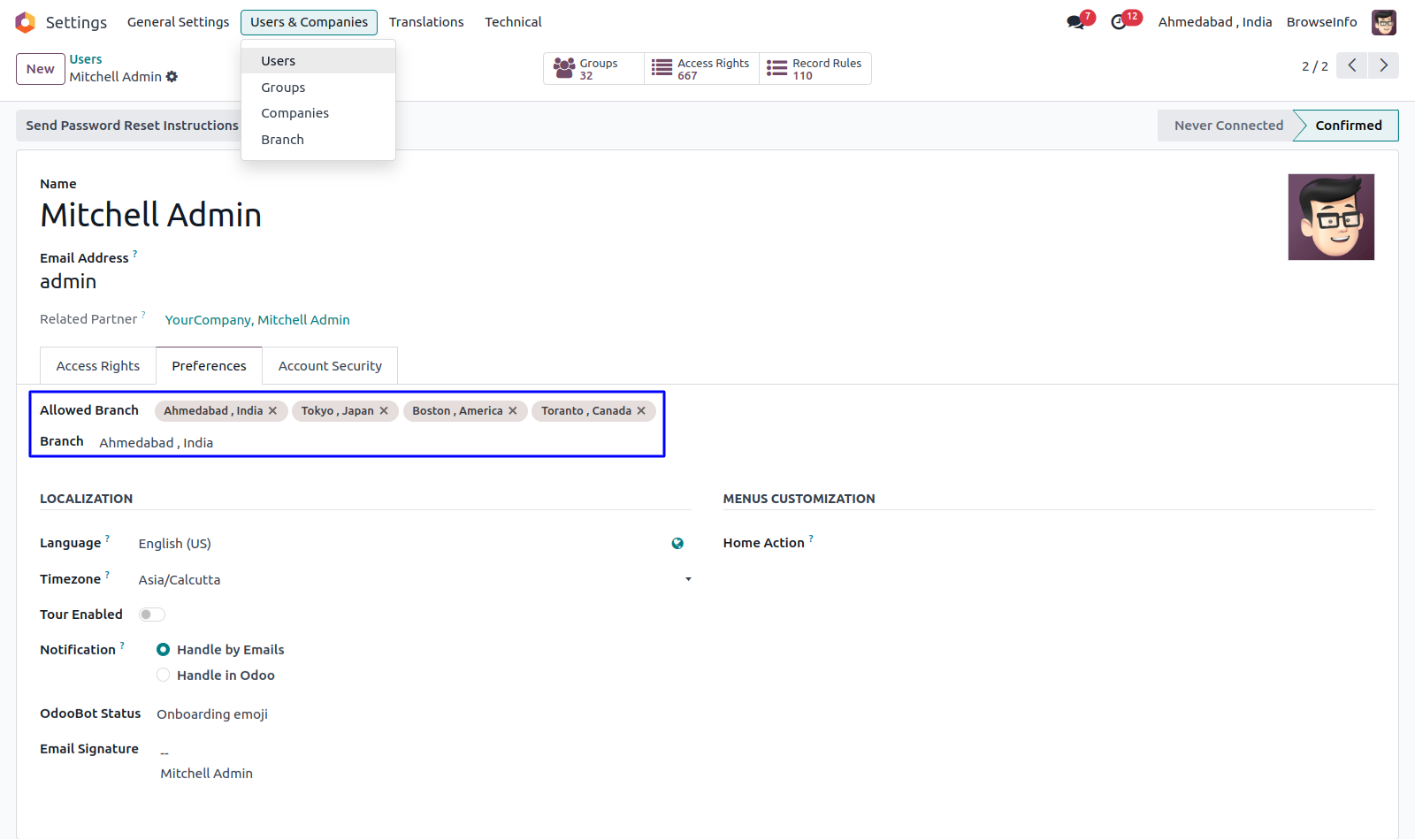 Also Don't worry about the access rights too, We have added branch user/manager roles inside the Odoo module, Branch user can only access records of its specific branch and Branch manager can see records of all Branches.