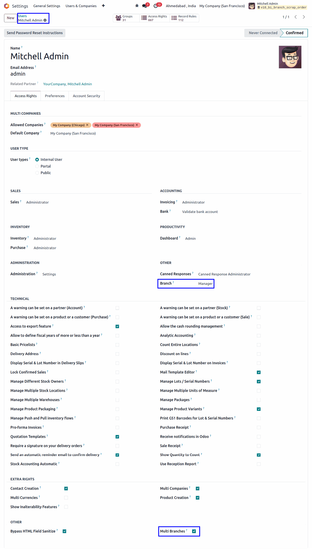 Also Don't worry about the access rights too, We have added branch user/manager roles inside the Odoo module, Branch user can only access records of its specific branch and Branch manager can see records of all Branches.