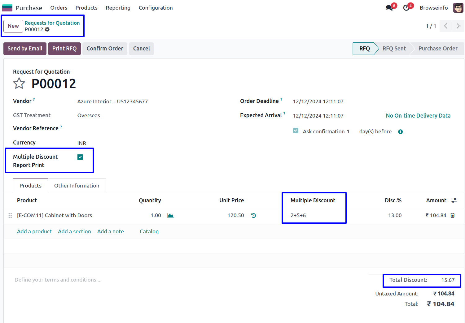 User can enable "Multiple Discount Report Print" checkbox to print multiple discount on purchase order report.