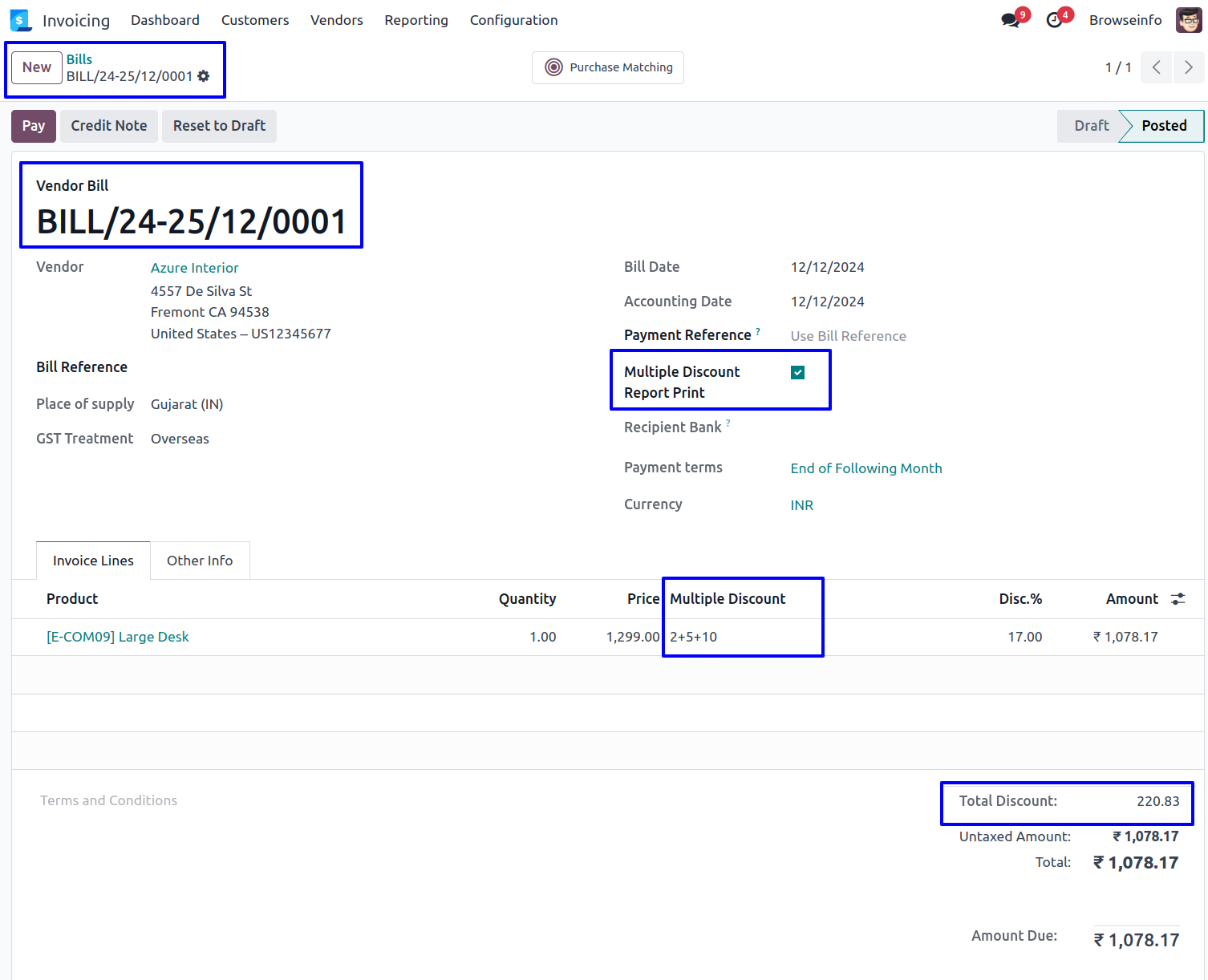 User can view and enable or disable multiple discount on sales, purchase, invoice and bill report.