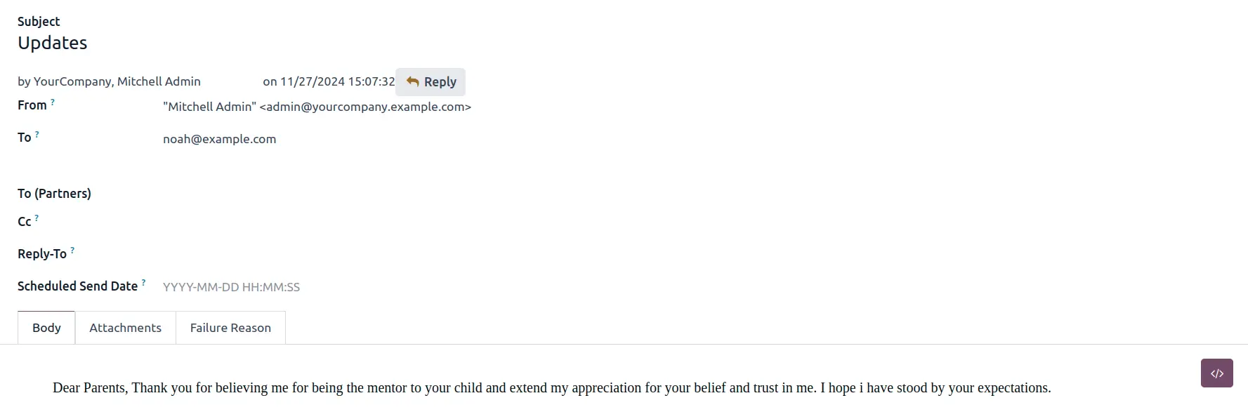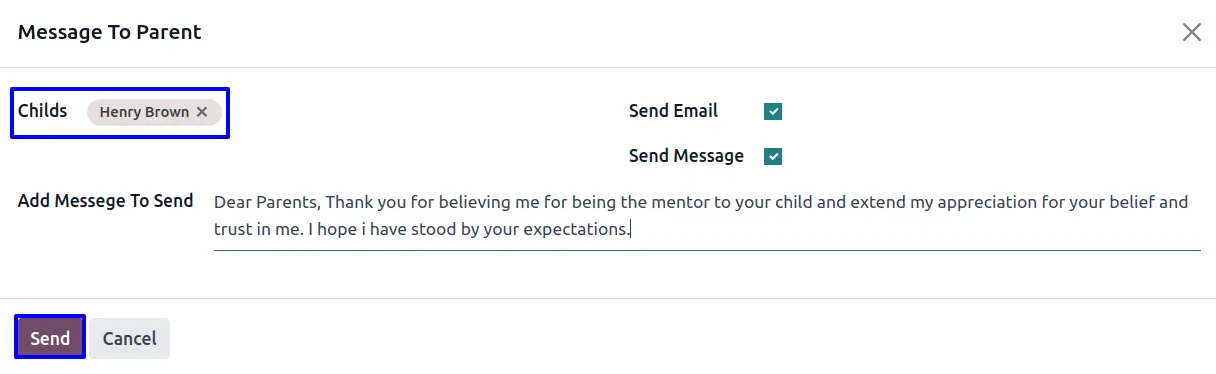 Users can see email will send to the child's parent if the "Send Email" option enable.
