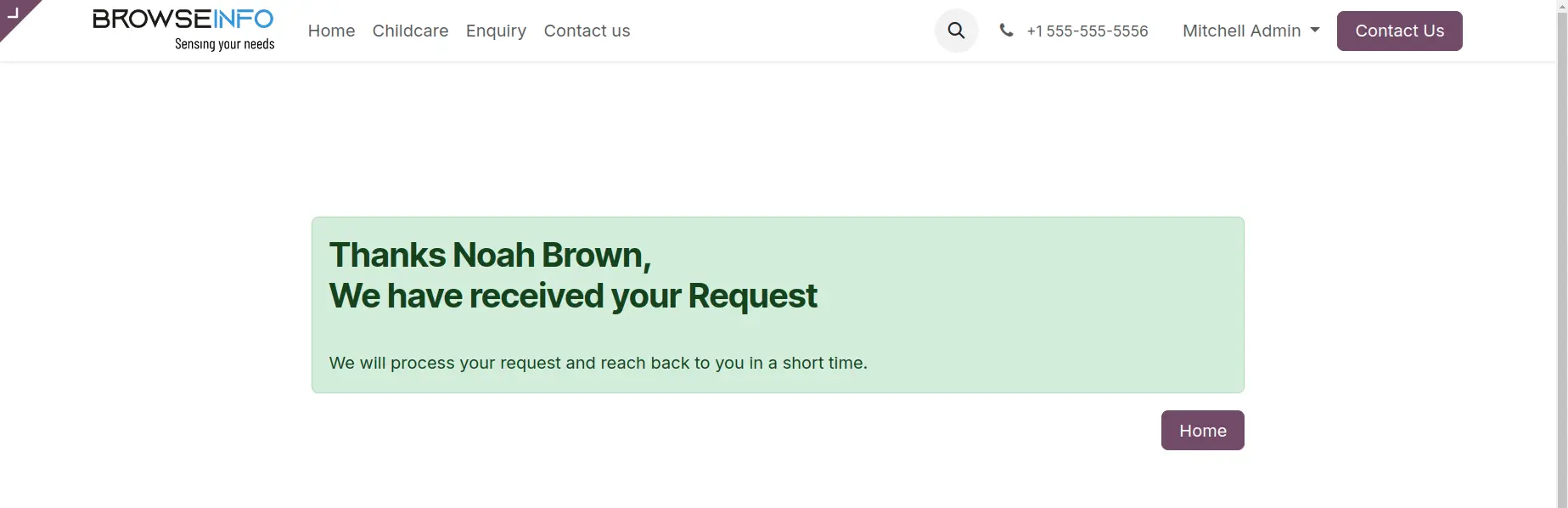 Under Childcare Management > Admission > Inquiries menu users can see all inquiries. Users need to click the "CONFIRM INQUIRY" button.