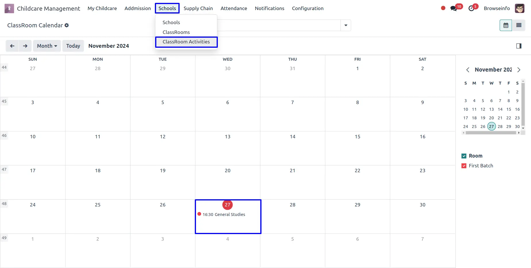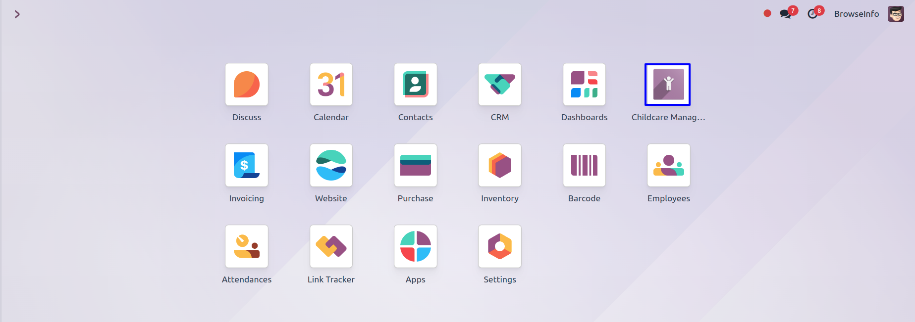Childcare Nursery Management odoo app helps users to manage childcare and playgroup management systems with odoo.