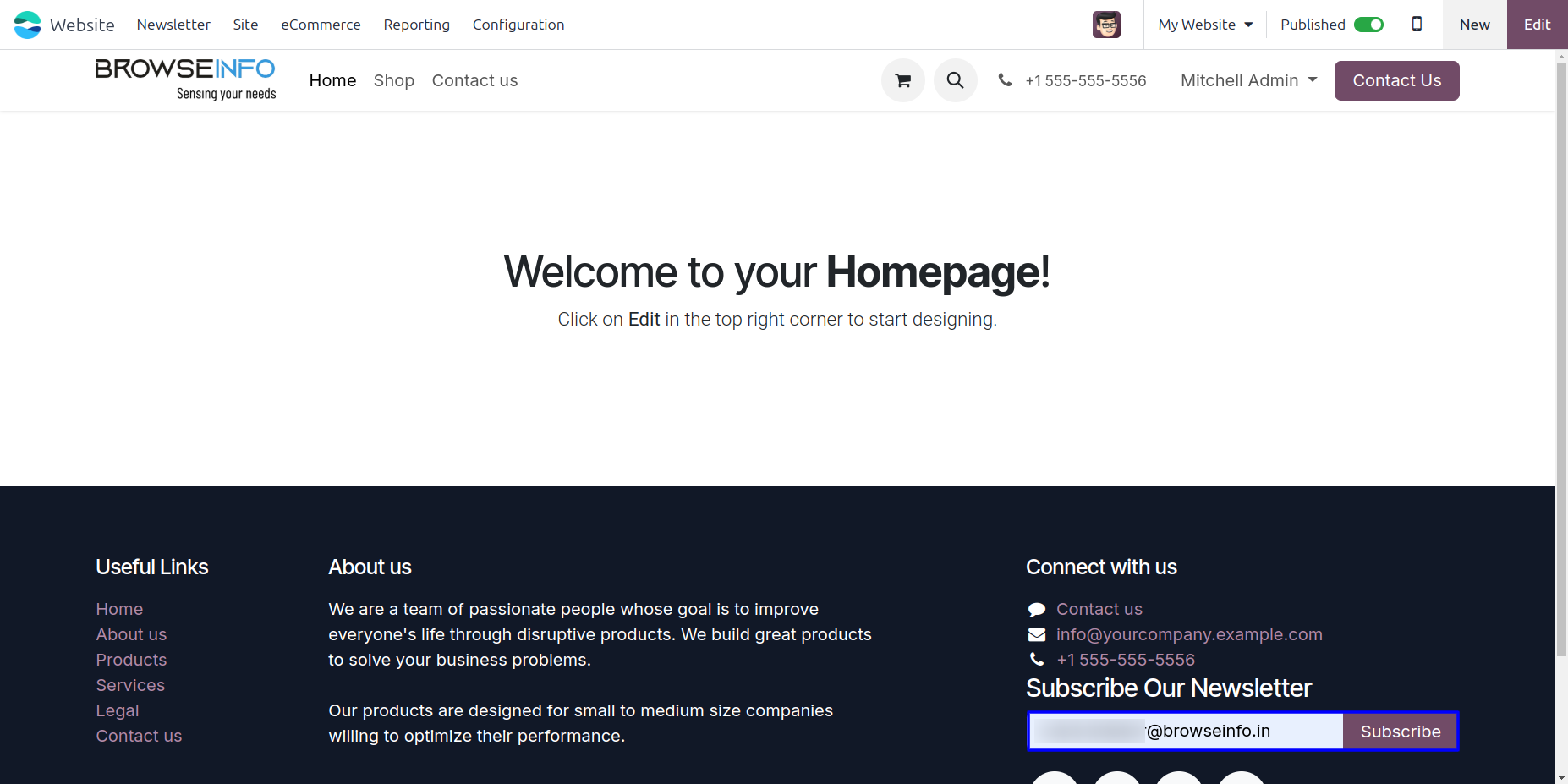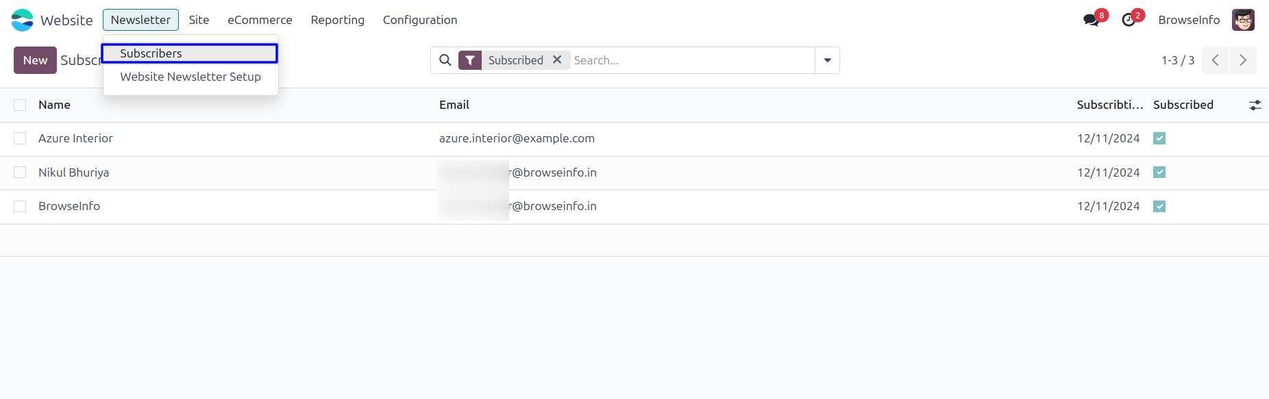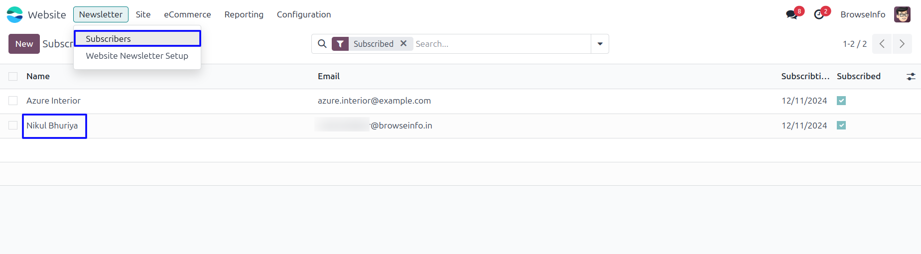 Once user subscribes to Newsletter, back-end entry will be generated with user details which is shown in figure.