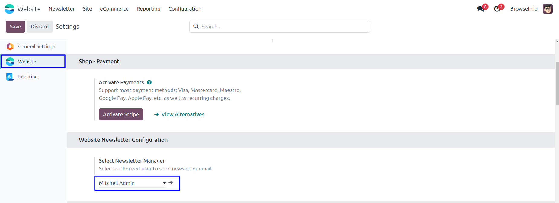 Configure newsletter manager, newsletter email will sent from newsletter manager's email.