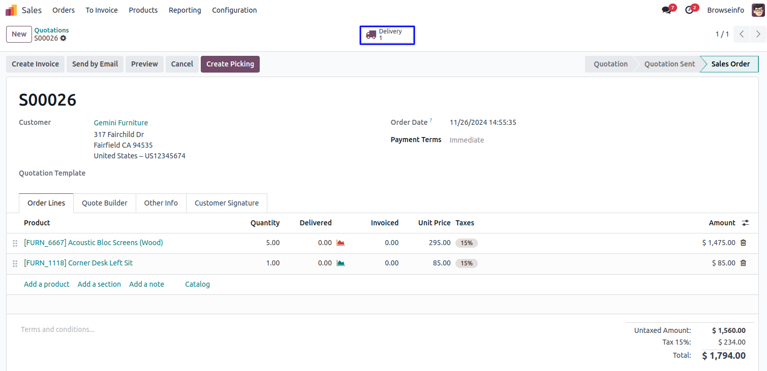 Picking Per Sales Order Line Odoo app is designed to streamline the order fulfillment process for businesses. With this app, businesses can easily manage and track the picking process for each individual order, from start to finish. This app includes features to create a picking order automatically or manually, User have also the option to generate a delivery per sale order or per sale order line so each order is packed and shipped on time. This app's features to create a picking order automatically or manually can provide flexibility to users, depending on their workflow. Additionally, the option to generate a delivery per sale order or per sale order line can help businesses ensure that each order is fulfilled accurately. Overall, this app can be a valuable tool for businesses looking to improve their order fulfillment process.
