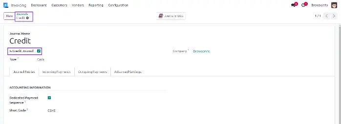 User can create a new credit journal using 'Is Credit Journal' checkbox.