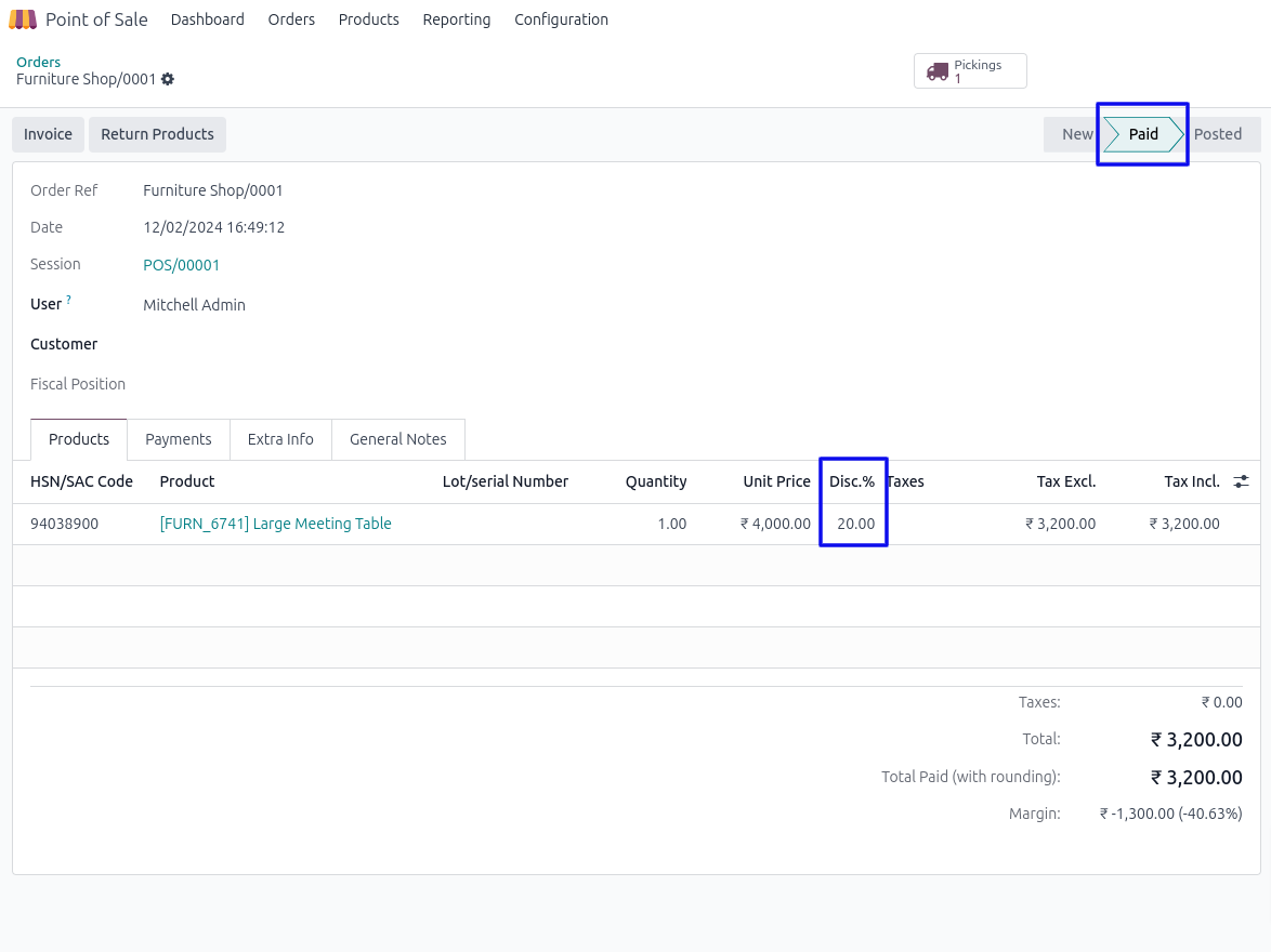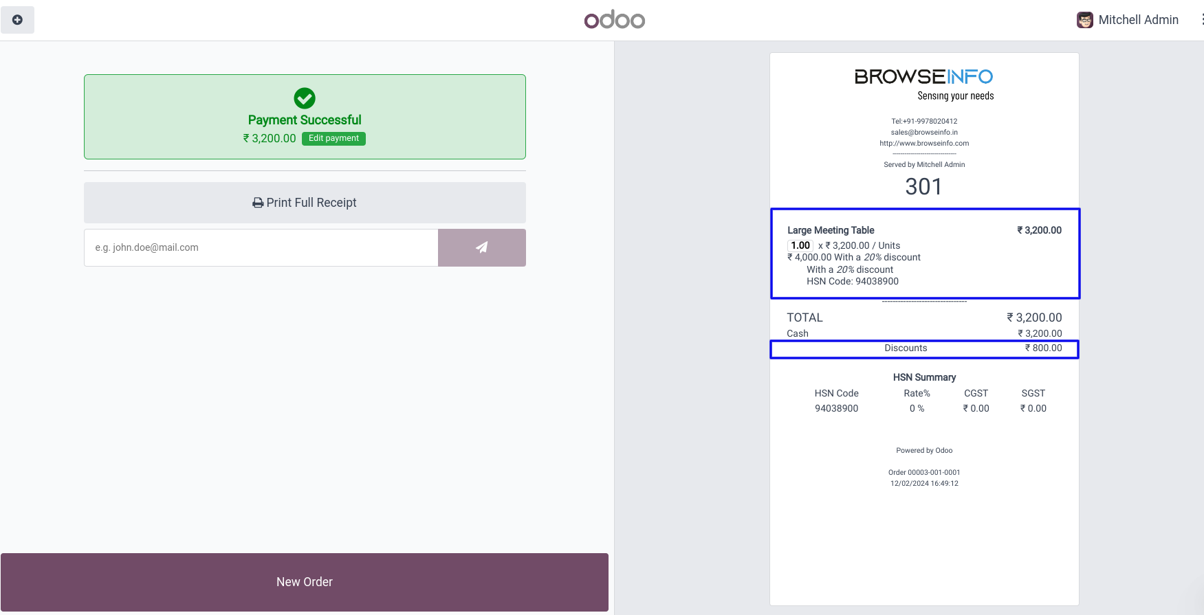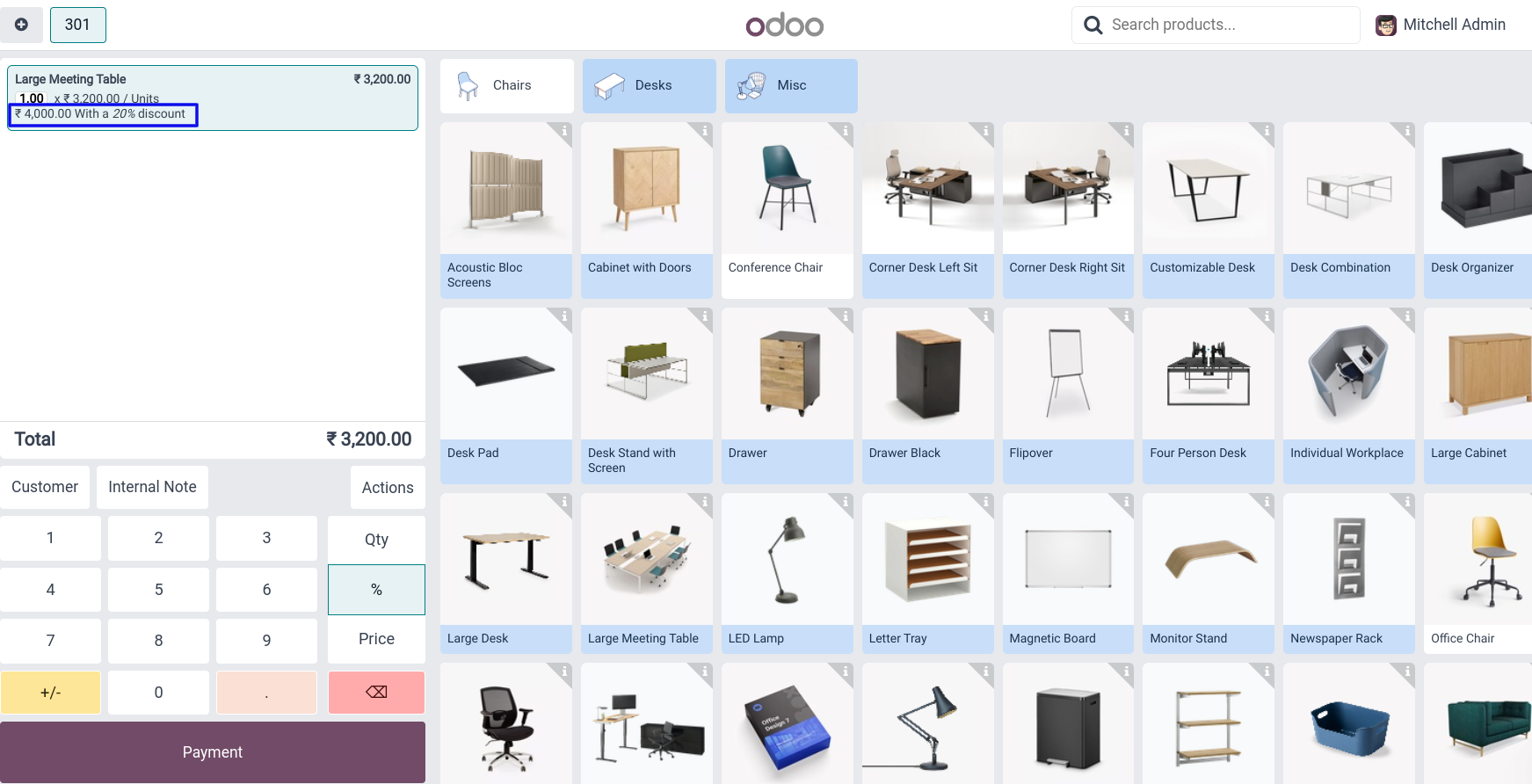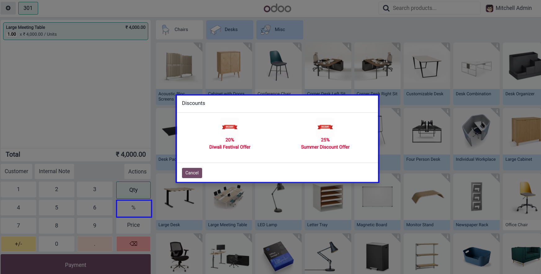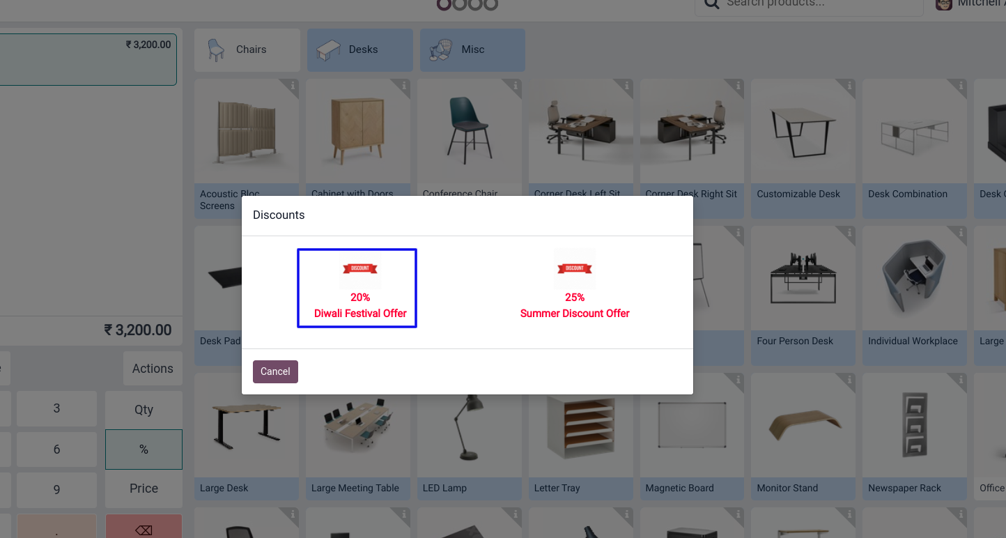 After Clicking the discount, it will be added to the product lines and price will be calculated accordingly.