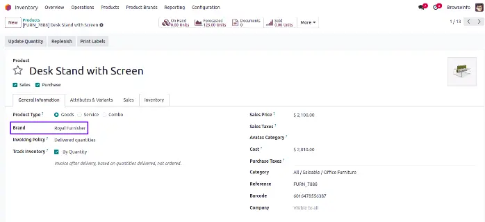 Using this Odoo apps you can filter Product Based on different category Brands. After installing this Odoo apps you can add new product brand and assign this product brand to each products and easily filters and view product by its brand categories.